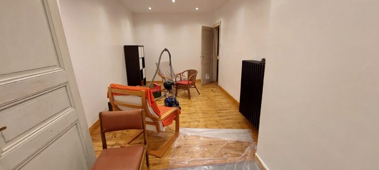 petit coup de peinture de finition dans l’escalier et dans la pièce du RDC