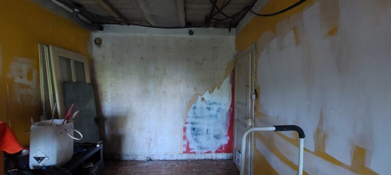 Début du décollage du papier peint dans la pièce d’y rez-de-chaussée.