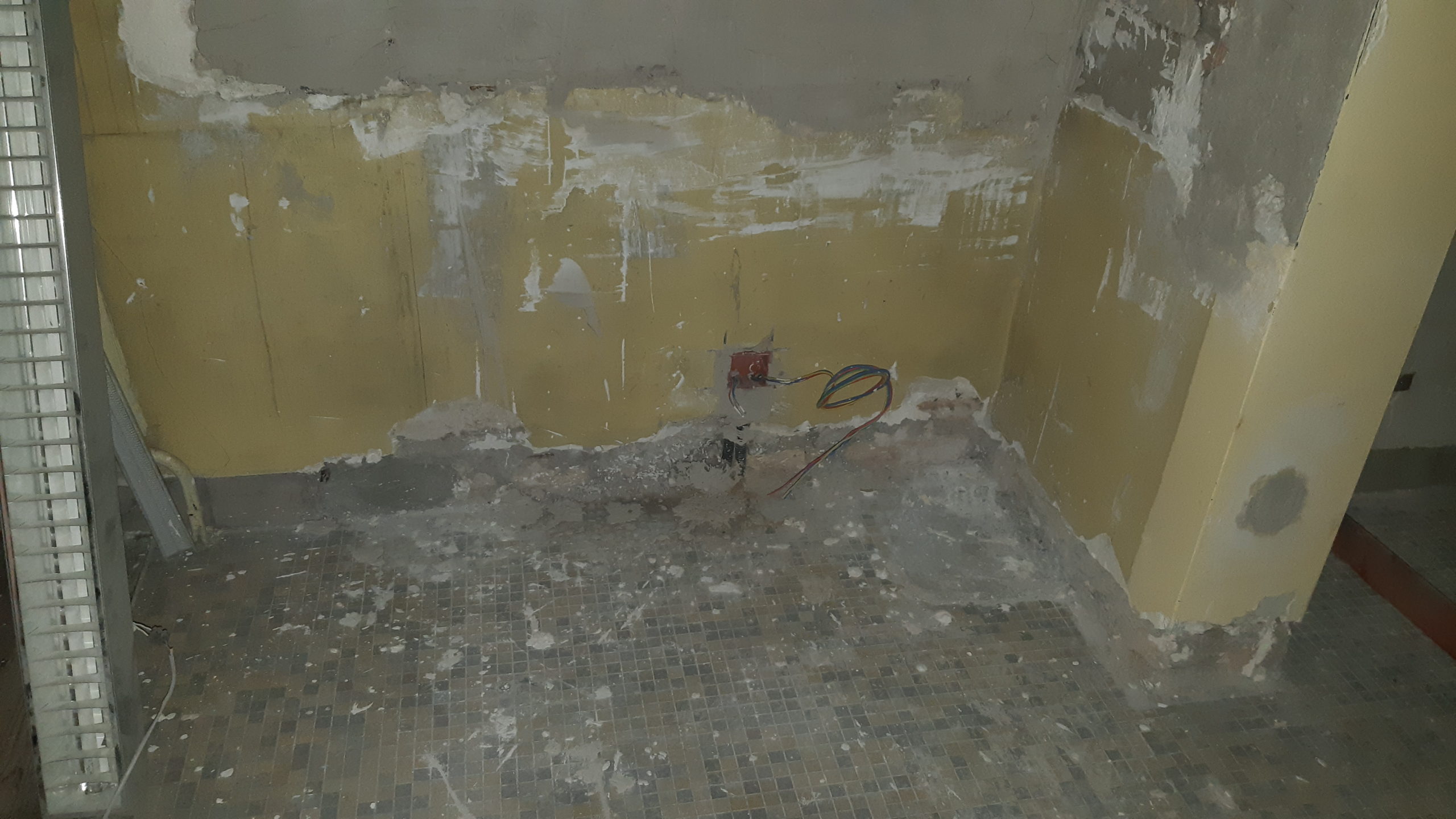 Dans le bureau, un peu de plâtre pour sceller un interrupteur et un bloc prise. Installation de gaines électrique aussi.