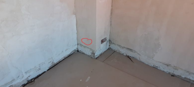 Retrait de la couche de lino qui était au-dessus du sol de la cuisine et là… surprise… le parquet est humide (mais pas pourri, ouf) et il y a un morceau de carrelage dans un coin. Ce carrelage accueillait surement il y a quelques années un poêle. Hypothèse confirmé par…