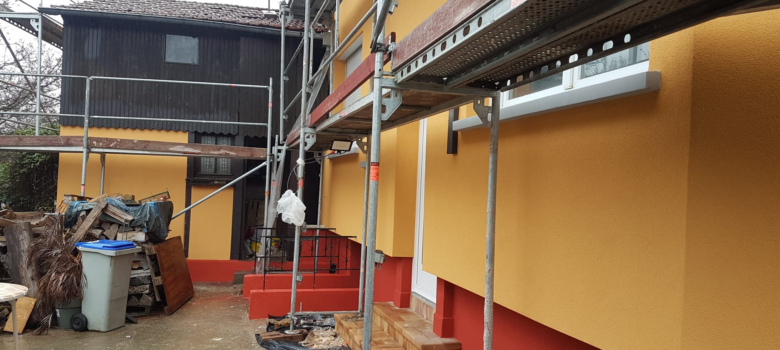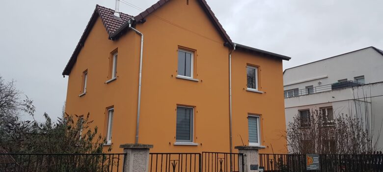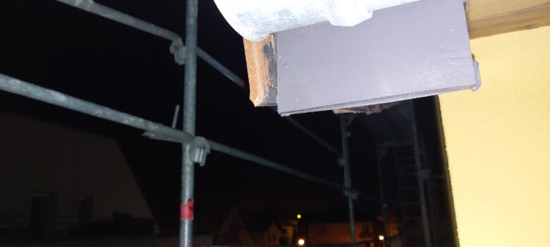 Installation de 2 moustiquaires supplémentaires au rez-de-chaussée. Inspection de la façade et de la toiture avant le démontage de l’échafaudage. Quelques retouches de peintures. Bouchage d’un trou et peinture dans un bout de toiture oublié pat lez couvreurs. Vérification que les tuiles de rives sont bien posées. Étanchéité au Scotch…
