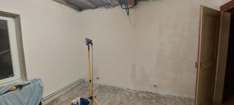 Livraison de la ventilation à installer dans le grenier. Poncage dans la chambre Ouest. Joint de carrelage dans les WC mais à finir.