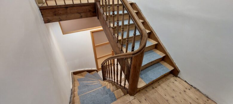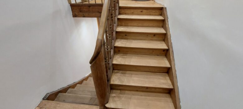 ponçage de la partie haute de l’escalier, marches et contre-marches. Ponçage du palier de la salle de bain. Arrachage de la partie en bois entre l’escalier et le mur sur la première partie Protection des marches avec le bois à nu Installation des dernières lampes extérieure dans l’allée d’entrée. Quelques…
