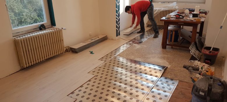 Courses chez LM puis, installation des tablettes de fenêtres dans le bureau et dans la chambre Mise en place des suspentes et fourrures métalliques pour la salle de bain Remplissage avec la pâte à bois des interstices du parquet dans le bureau
