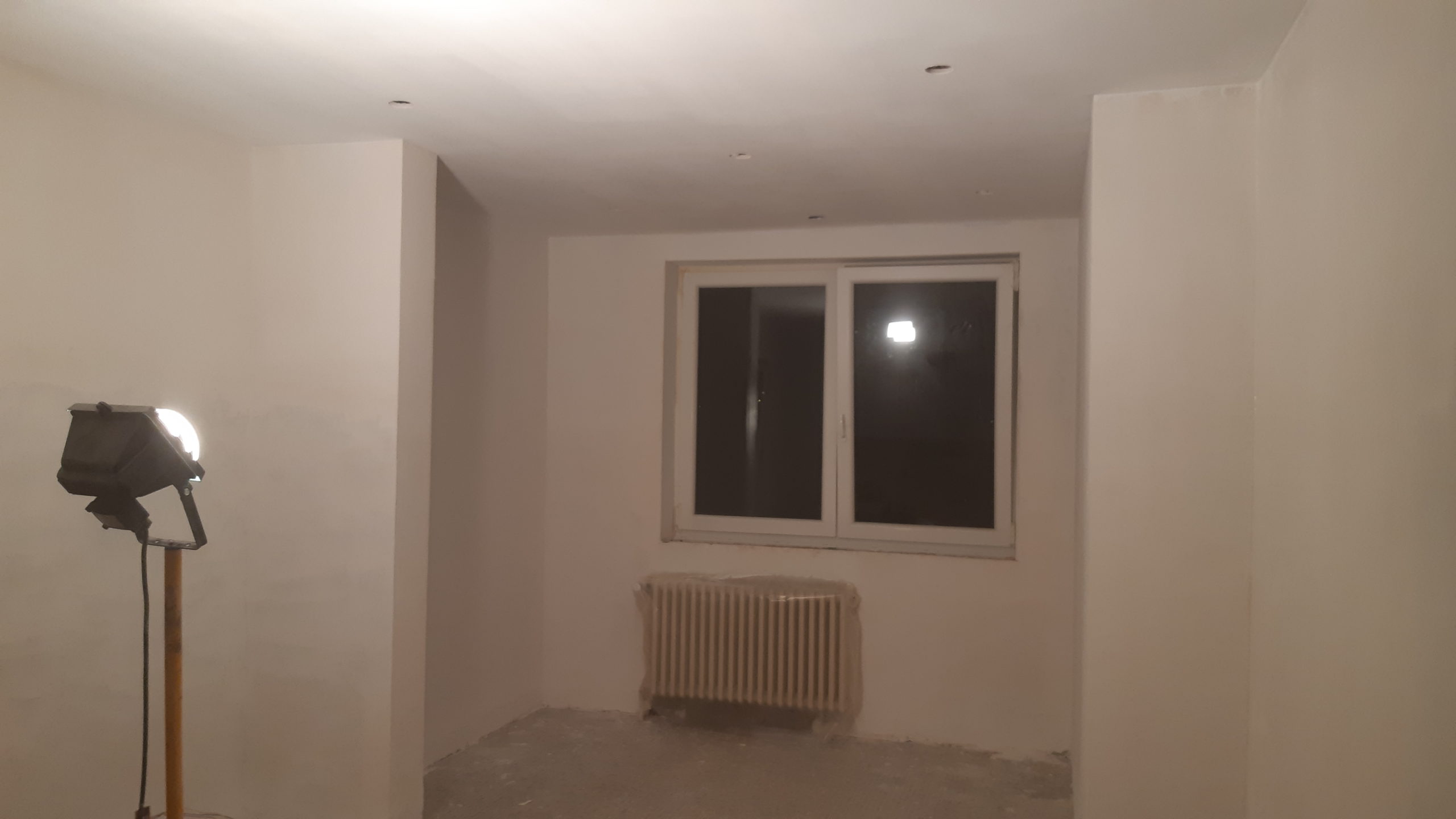 Poncage du plafond du bureau Plâtre autour de la grande fenêtre