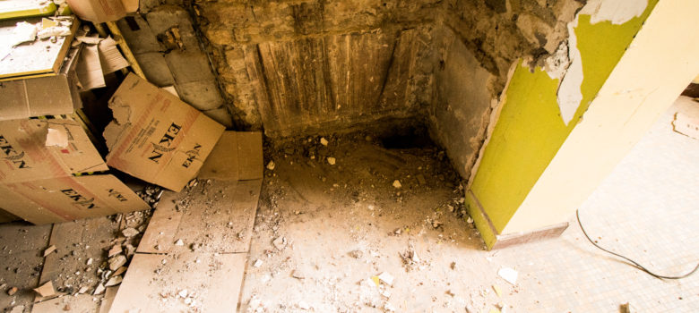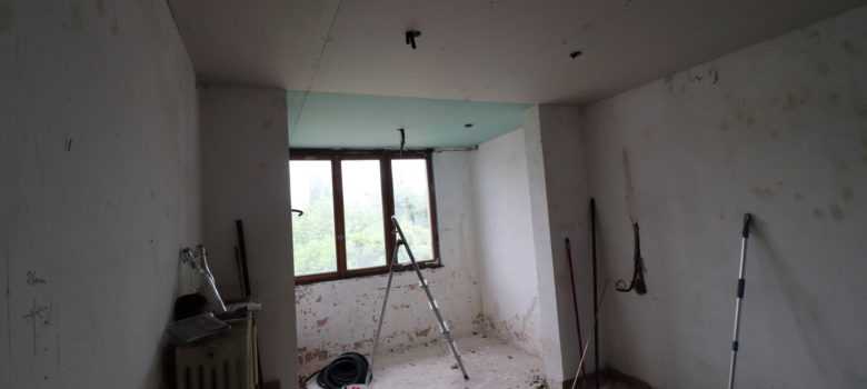 Une cuisine à l’étage c’est une bonne idée pour une maison bi-famille. Ca ne convient pas réellement à ce que l’on souhaite vu que cette pièce est censé être transformée en bureau du fait qu’elle est exposée au sud et à l’est. Boom un coup de masse dans l’évier et…