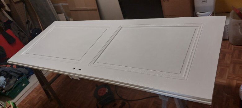 Peinture de la porte de la chambre nature. 2 couches de plus (une le matin et une le soir). Peinture des huisserie de la même pièce. Découpe d’une baguette pour cacher le trou de la serrure de la salle de bain, fixation et mis en peinture. Mastic de finition sur…