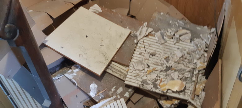 La journée commence chez Leroy Merlin avec quelques achats nécessaire pour le week-end. Ensuite, rendez-vous avec Pierre pour descendre un plafond en plus. Tout comme le plafond de la chambre parentale, celui de la chambre du 1er étage nord-ouest était également en paille. Démontage de tout le plafond et évacuation…