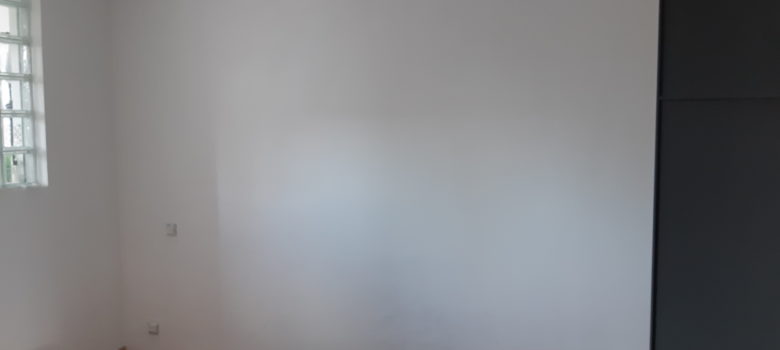 Nouvelle couche de peinture dans le bureau Mise en place des pitons de suspente pour la salle de bain
