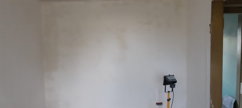 Application d’une couche d’apprêt sur le plafond de la chambre (mais avant !) Harmonisation de la hauteur du sol dans la cuisine pour préparer un ragréage. Préparation de la goulotte pour amener le fil de terre au tableau électrique Poursuite de la démolition de la cheminée côté intérieur, arrivé jusqu’au…