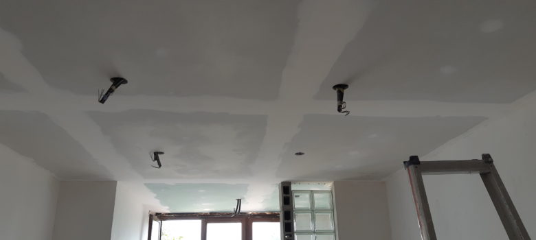 Pluie battante cet après-midi, l’occasion de vérifier l’étanchéité mais quelques fuites apparaissent. Mise en place de quelques sceau pour corriger en attendant de pouvoir faire un bricolage. Ponçage des 4 murs de la chambre et du plafond Remise d’une couche d’enduit pour lisser les quelques trous restants. Attente du séchage…