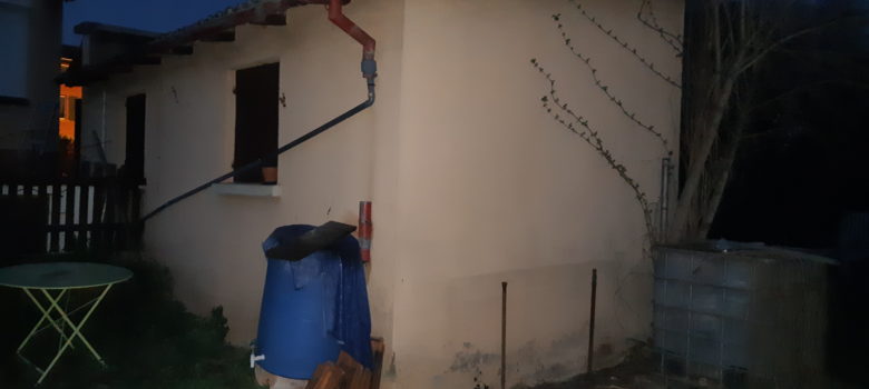 Installation du réseau d’alimentation de la cuve à eau avec un système pour éviter que l’eau de tombe directement par le haut (afin d’éviter l’usure du liner). Puis raccordement à l’égout de décantation déjà posé avant. Installation de vieille chambre à air pour assurer l’étanchéité sans collier (afin de pouvoir…