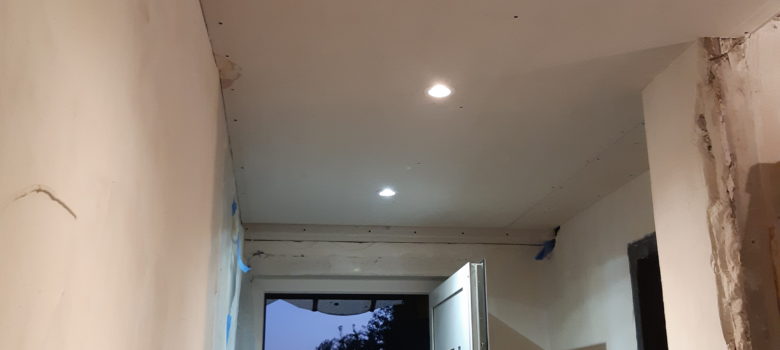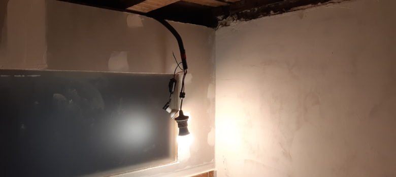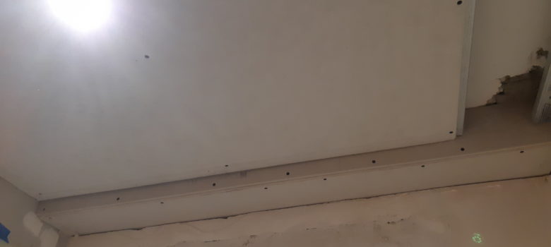 Plinthe dans la salon Début d’installation de fourrures métalliques pour la plafond du couloir Arrachage du lino collé dans la placard