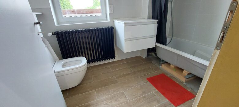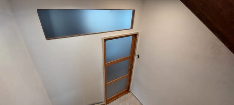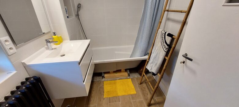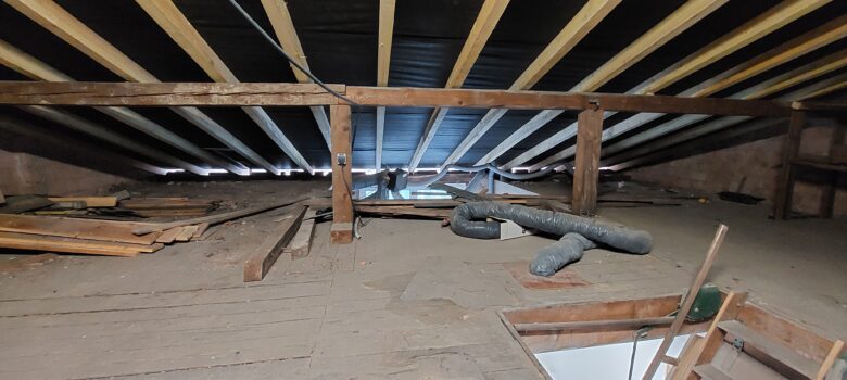 Début de mise en peinture des lambris sous la toiture. Ouest et nord fait. Est partiellement.