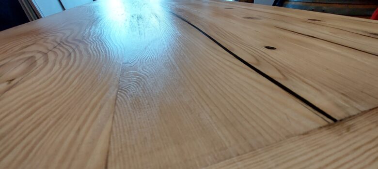 Finalisation des dernières couche de vernis/vitrificateur sur la table du salon et mise en place du four à tarte flambée