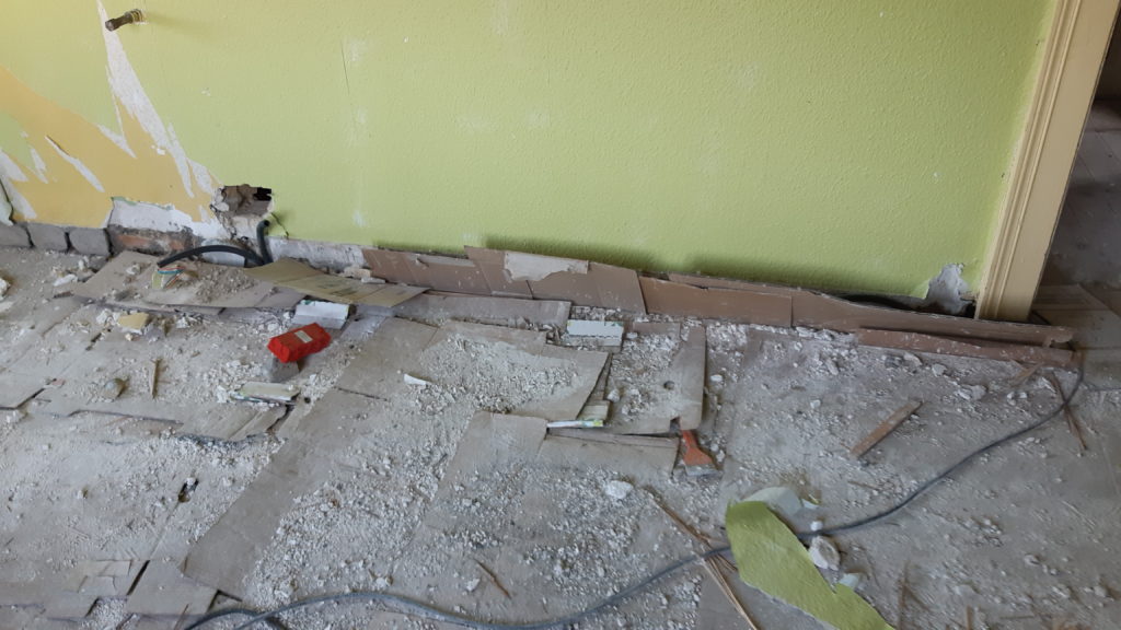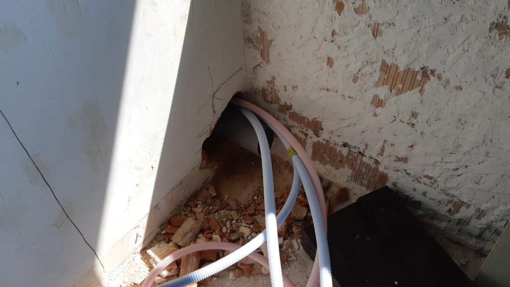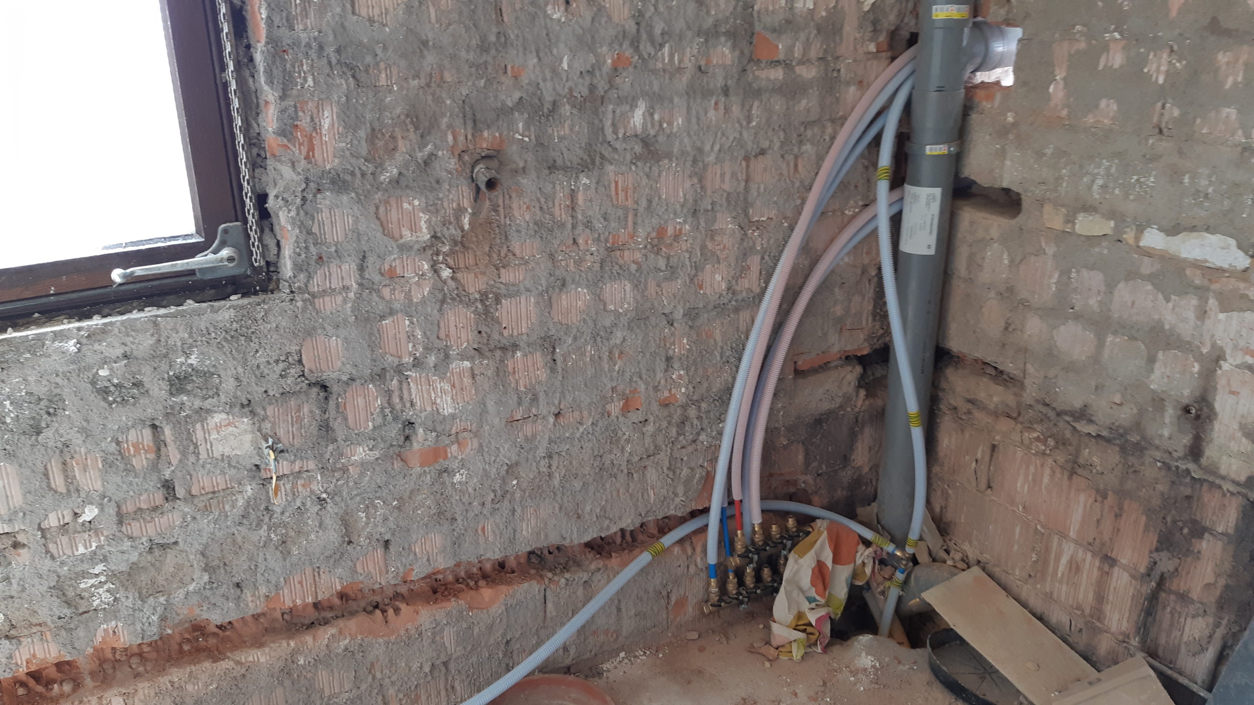 On commence avec un peu de plomberie pour passer les tuyaux de la douche et réorganiser les distributions d’eaux froides et chaudes