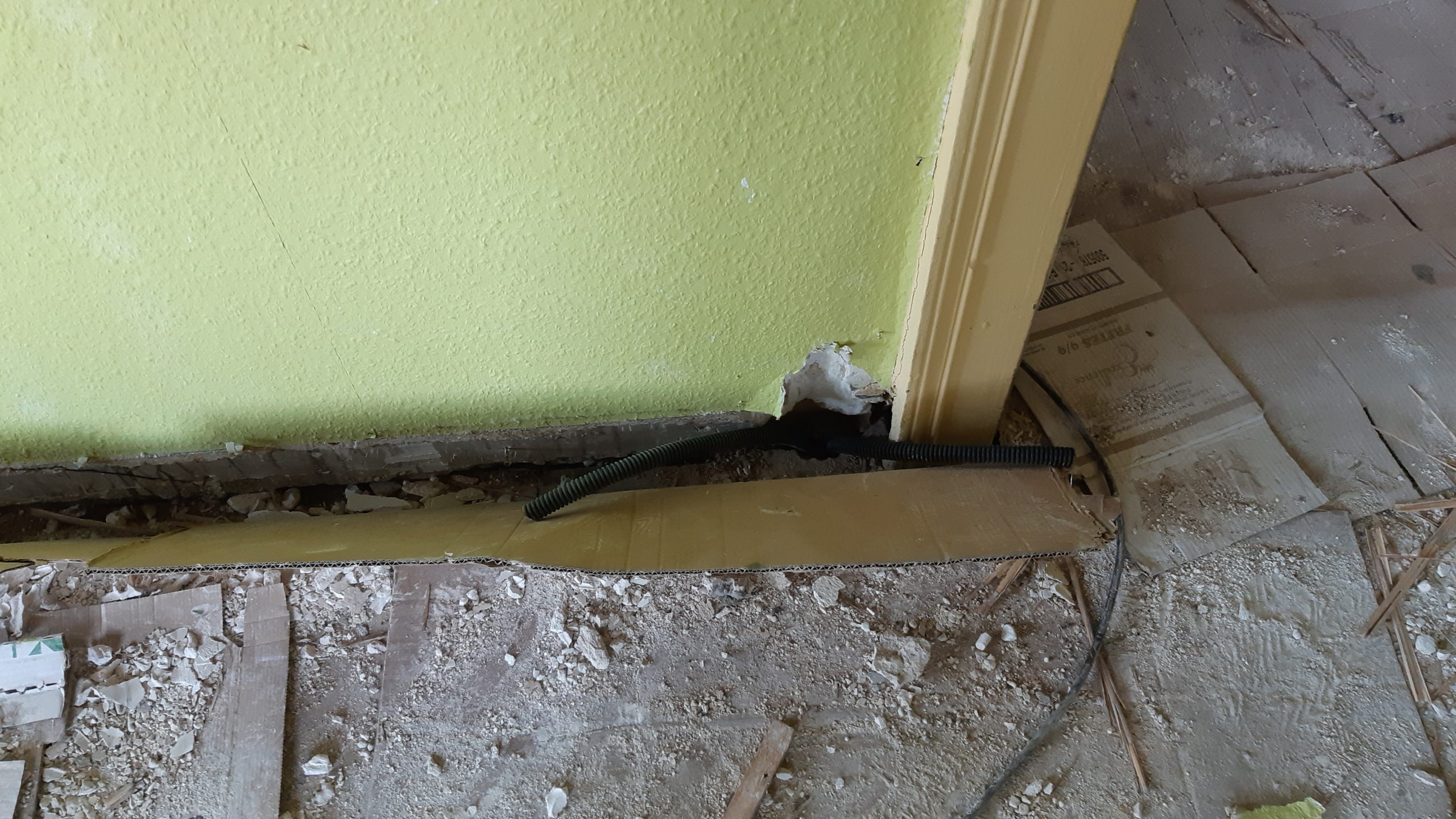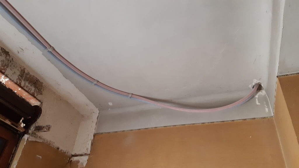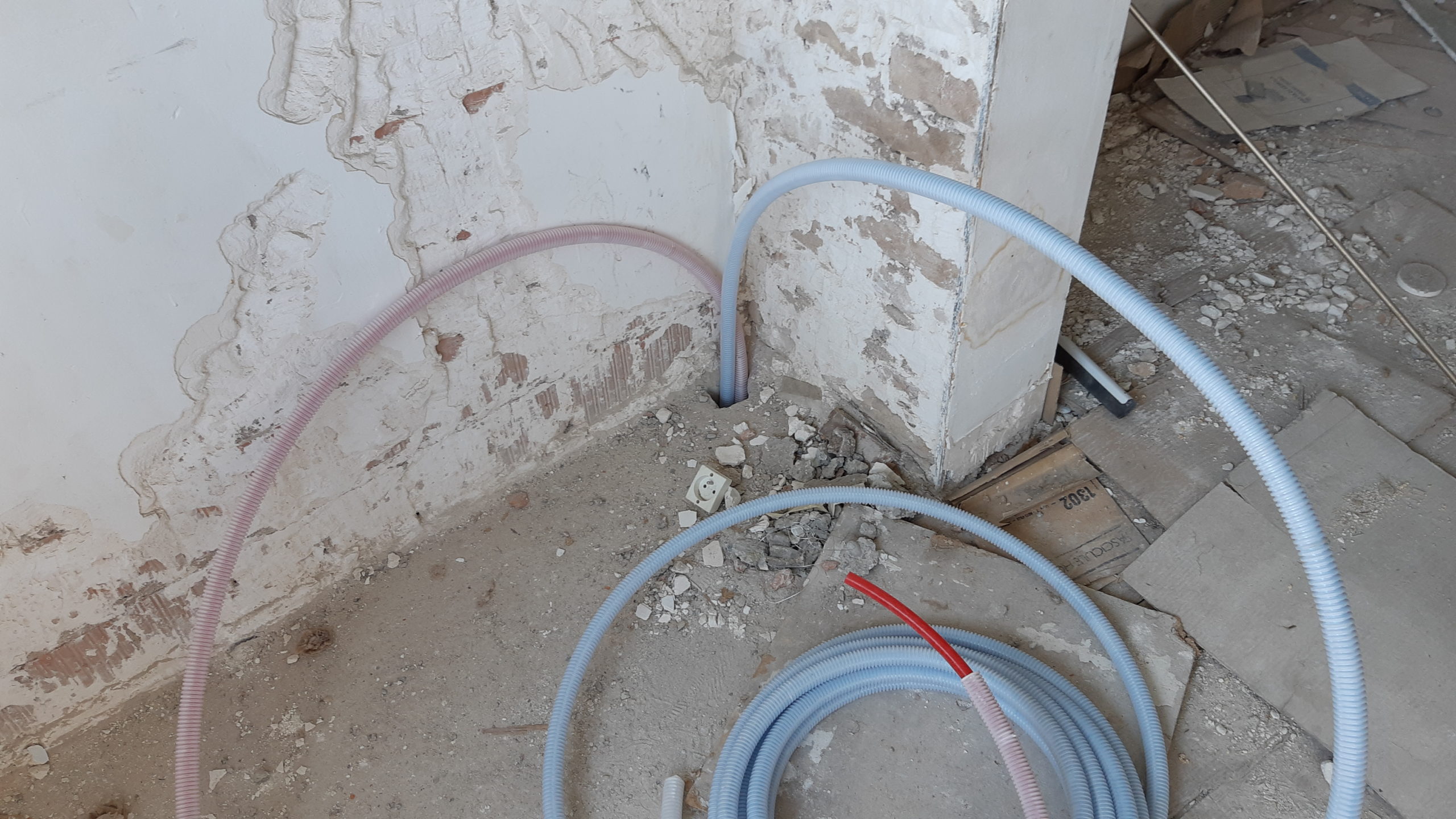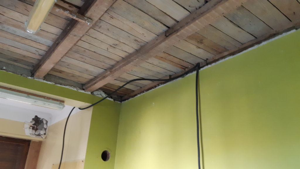 Ensuite, on commence l’électricité du bureau avec le passage des gaines et le raccordement au tableau éléctrique