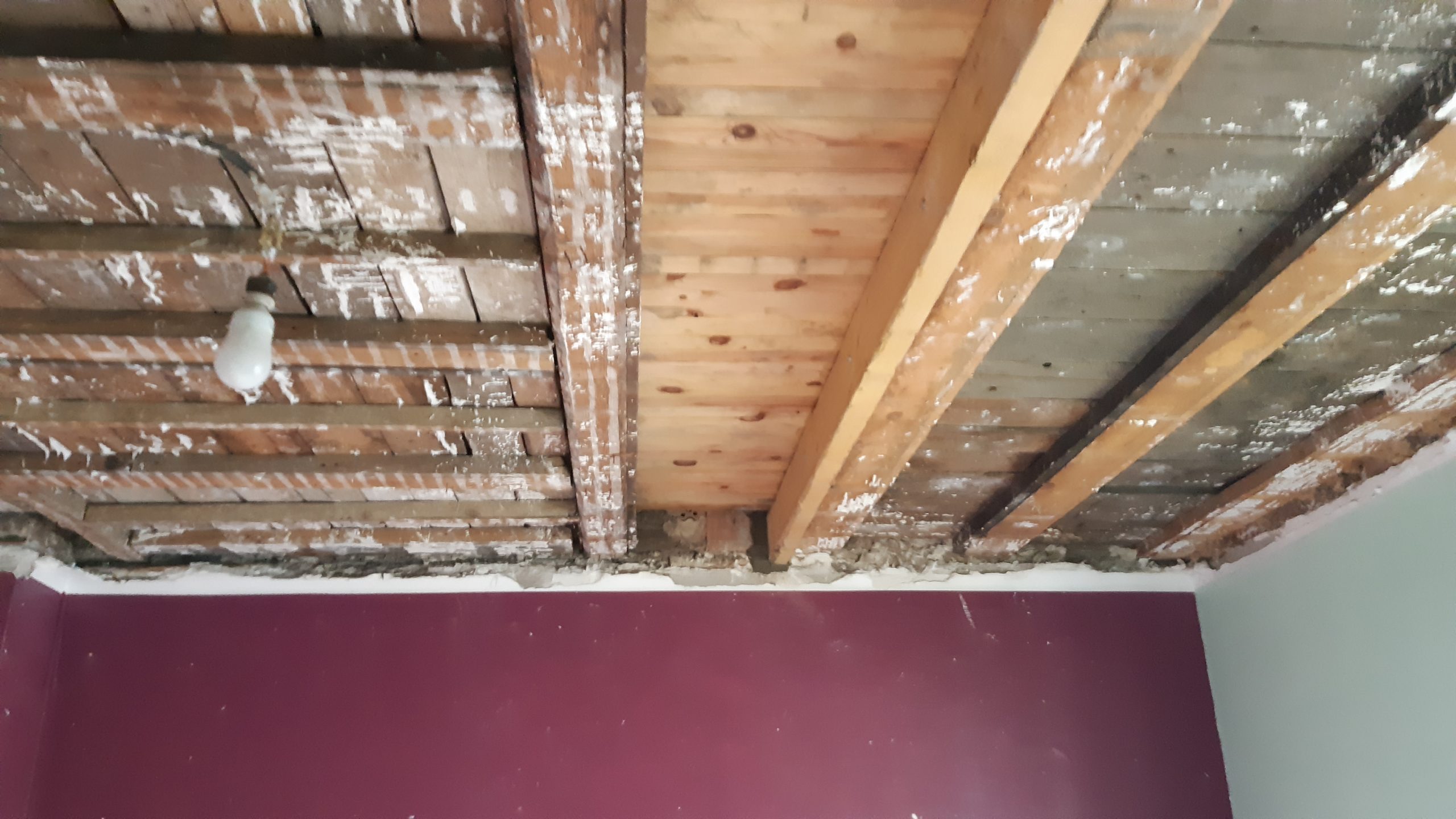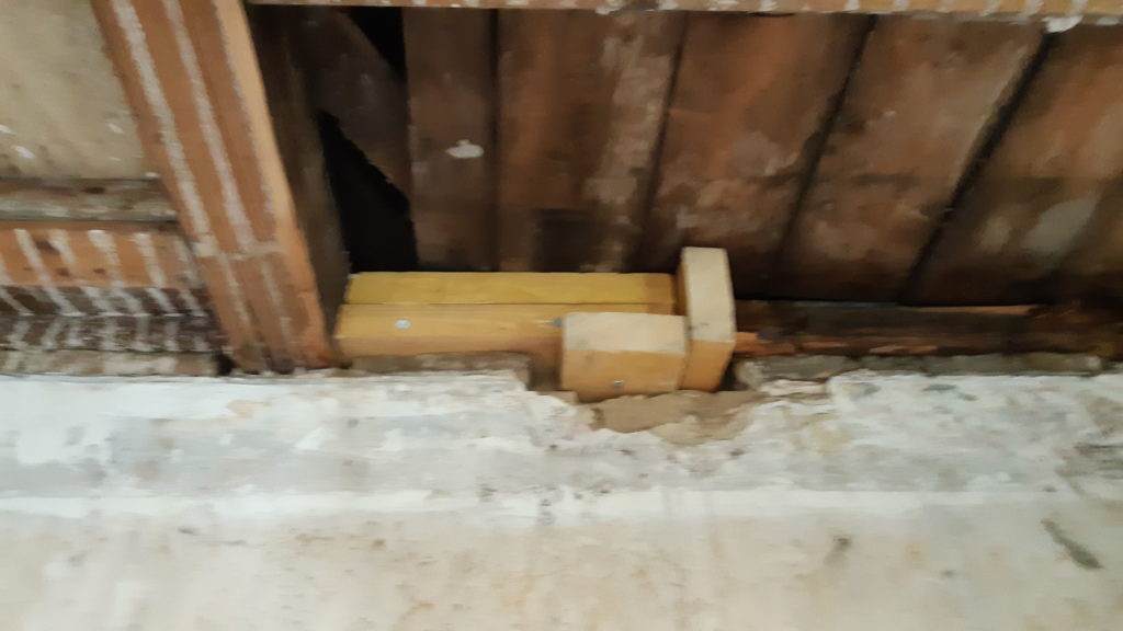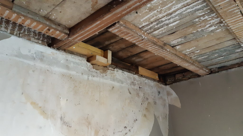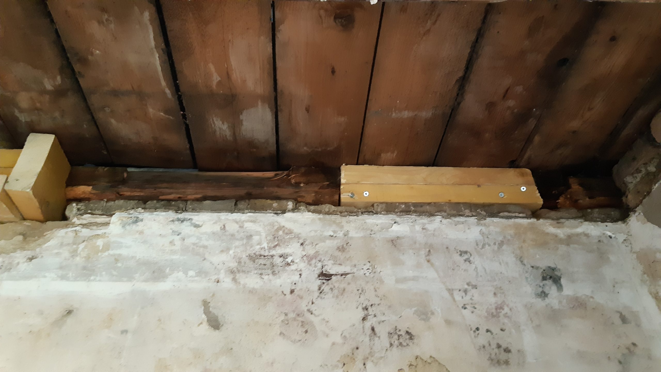 Suppression de la poutre usées et remplacement par des morceaux de basting (vue chambre rouge)