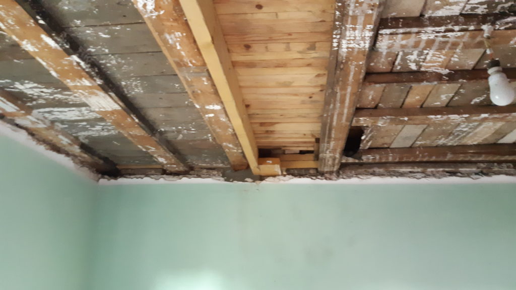 Suppression de la poutre usées et remplacement par des morceaux de basting (vue chambre violette)