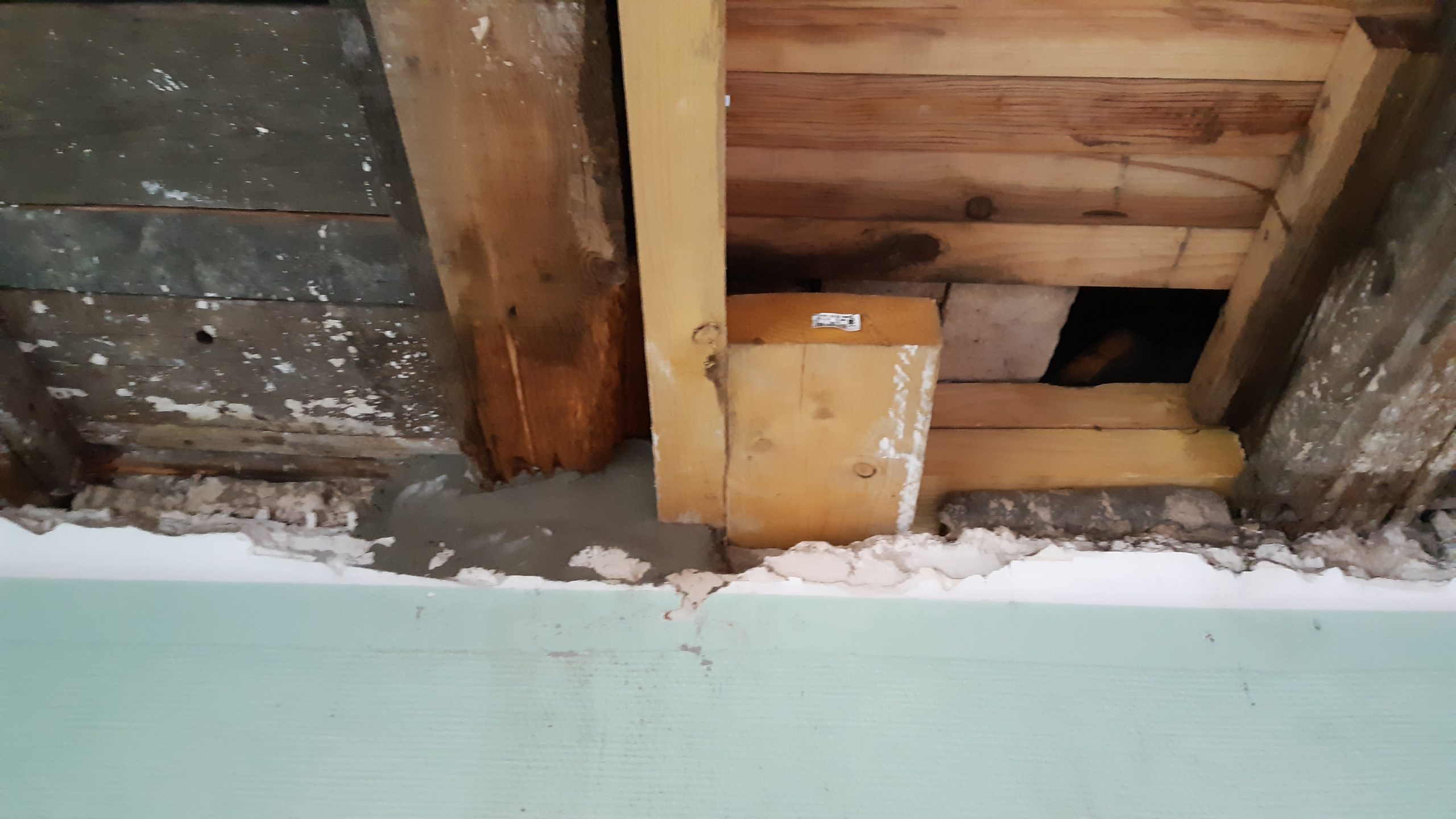 Pour les autres, ponçage du plafond de la chambre parentale et mise en place d’une deuxième couche d’enduit à bande. Puis, vidage du compartiment qui jouxte la poutre à renformer (laine de verre). Enfin, mise en place d’une poutre en bois dans la chambre violette pour renforcer une poutre affaiblie. Remplacement également d’autres segments de poutres fragilisés.