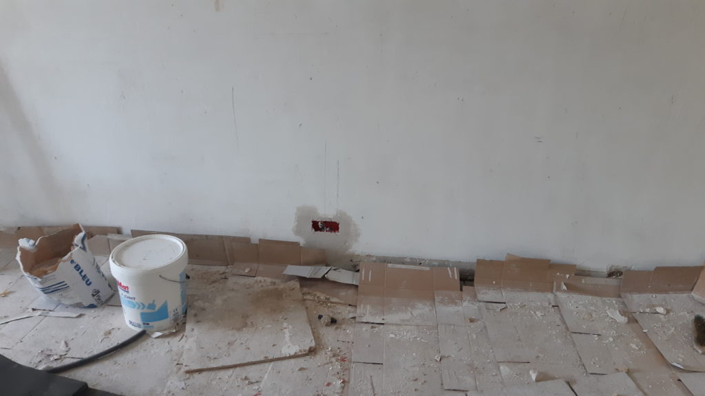 Début de journée avec quelques finalisation d’encastrement des boites électrique de notre chambre.