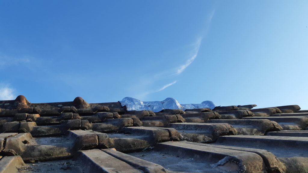 En cours de finalisation du bouchage du trou de la cheminée. Quelques adaptations nécessaires liées à la proximité de la faitière
