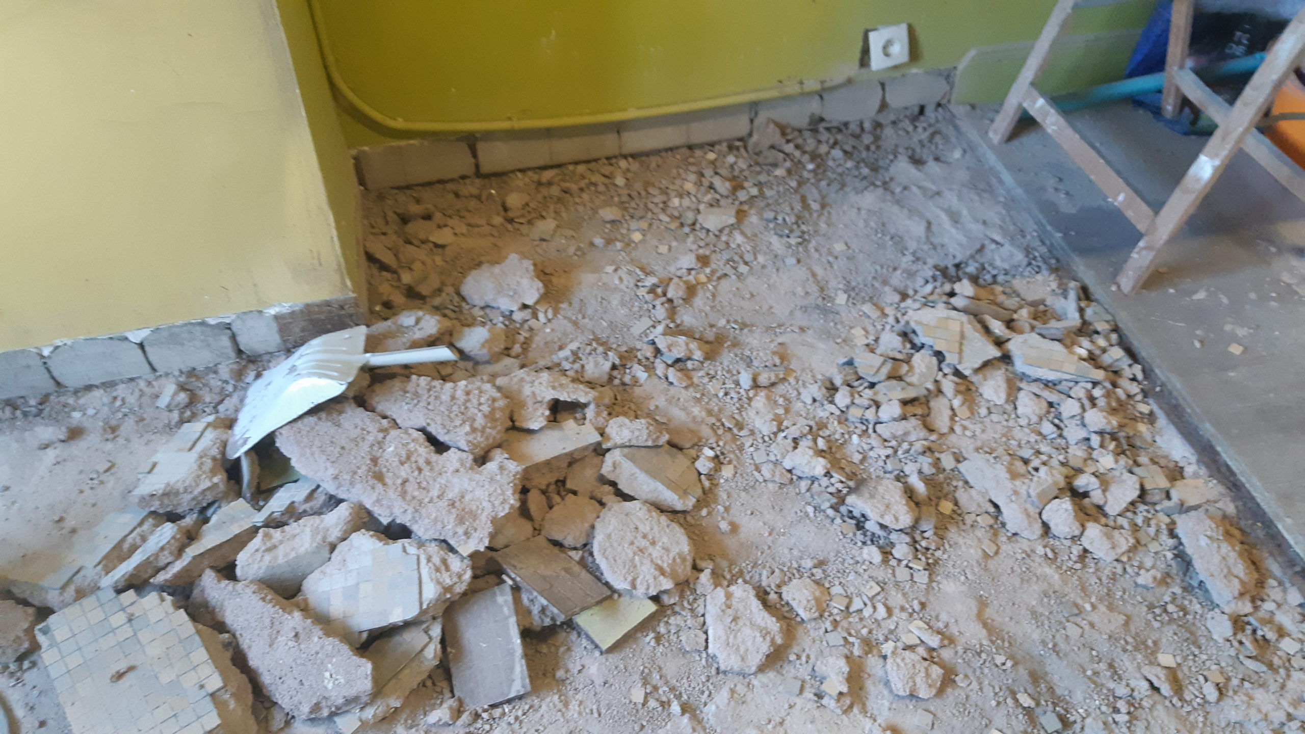 Pendant ce temps là, le carrelage de la cuisine est en train d’être cassé !