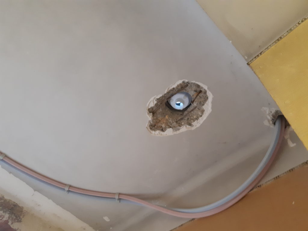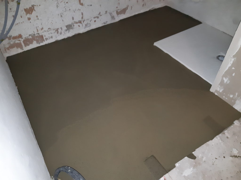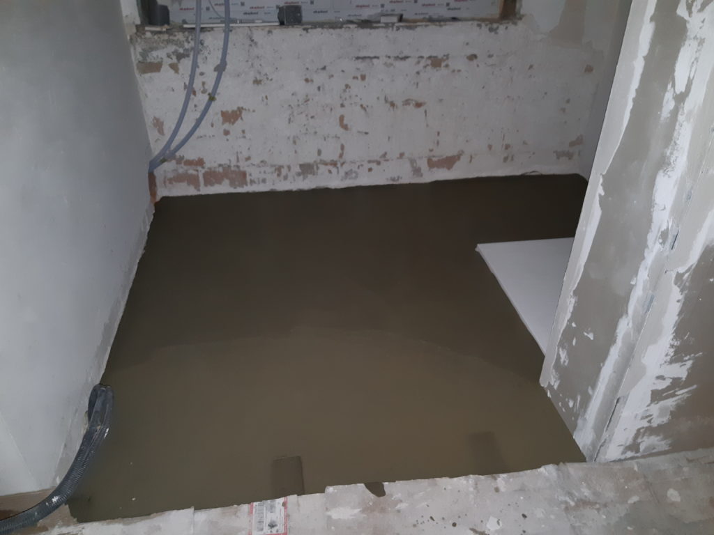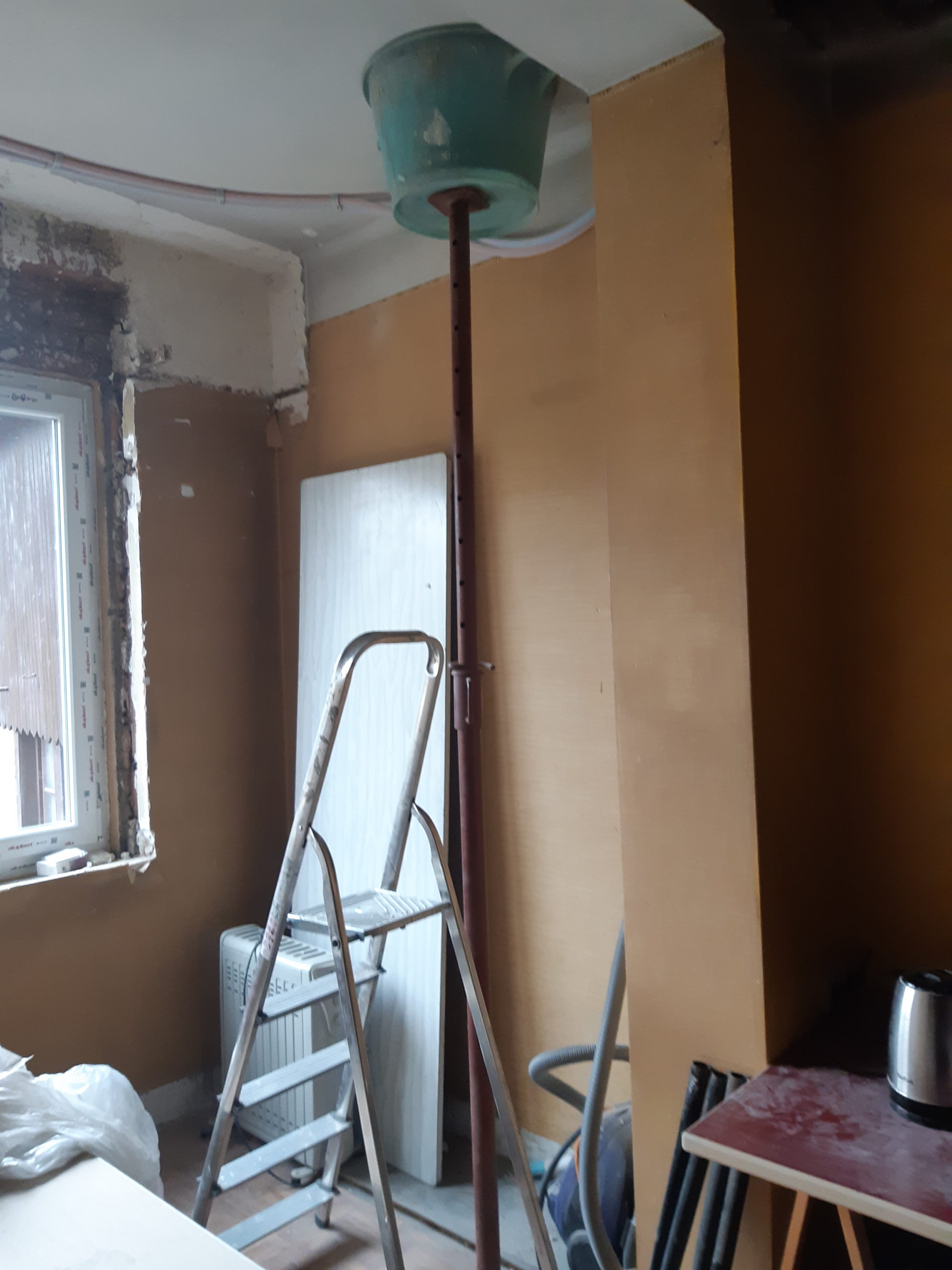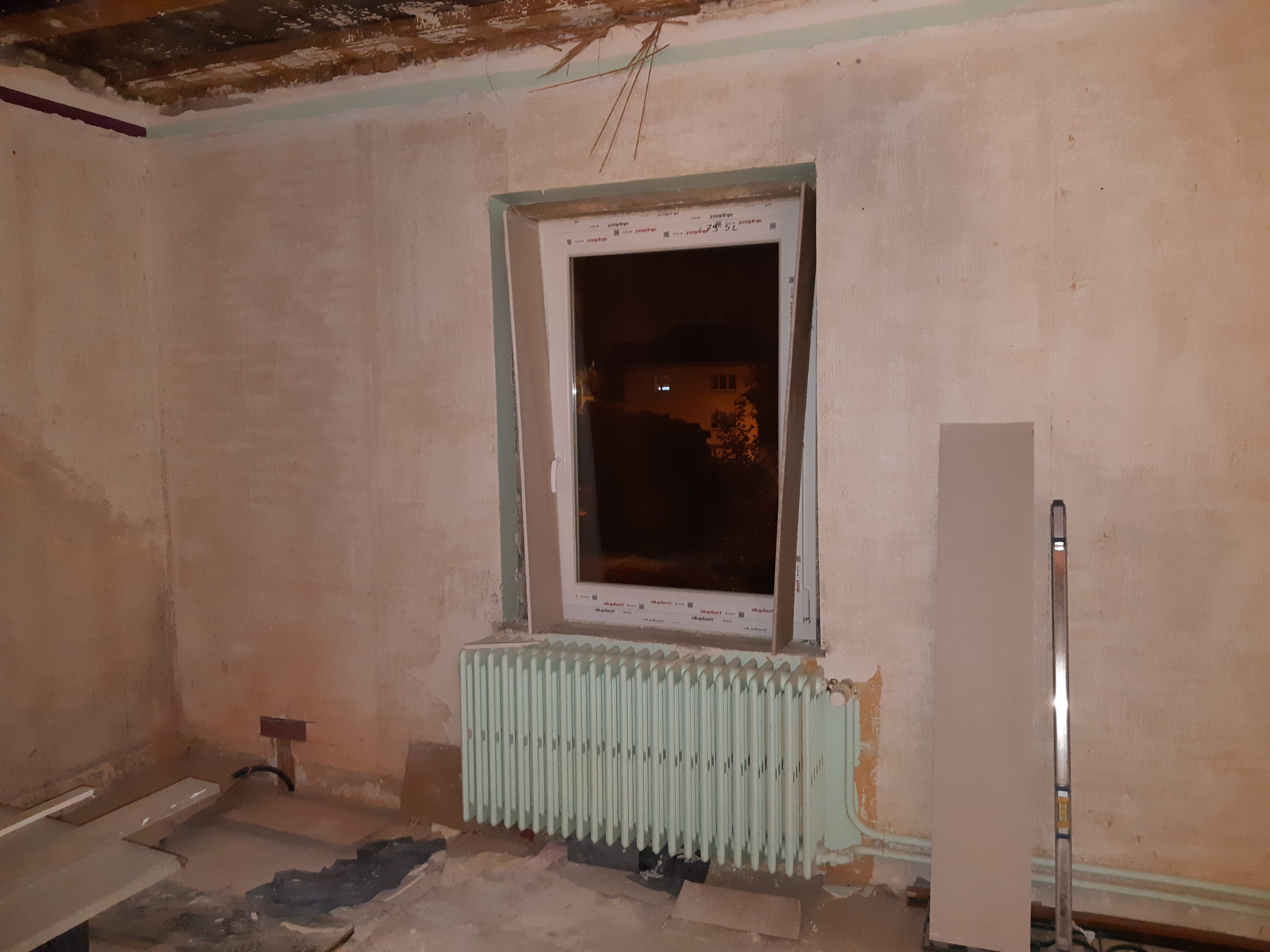 Côté alsacien avancée dans la chambre avec la pose du bac de douche, perçage pour la bonde de douche et ragreage autour du bac. Démarrage de l’habillage des fenêtres