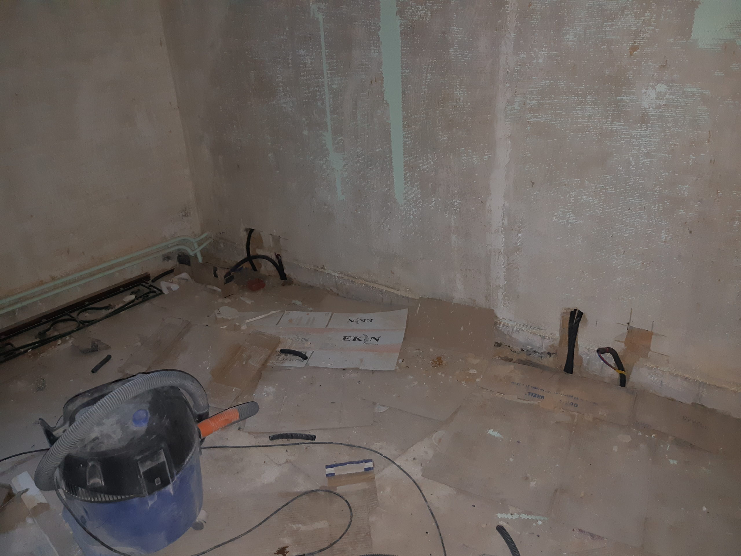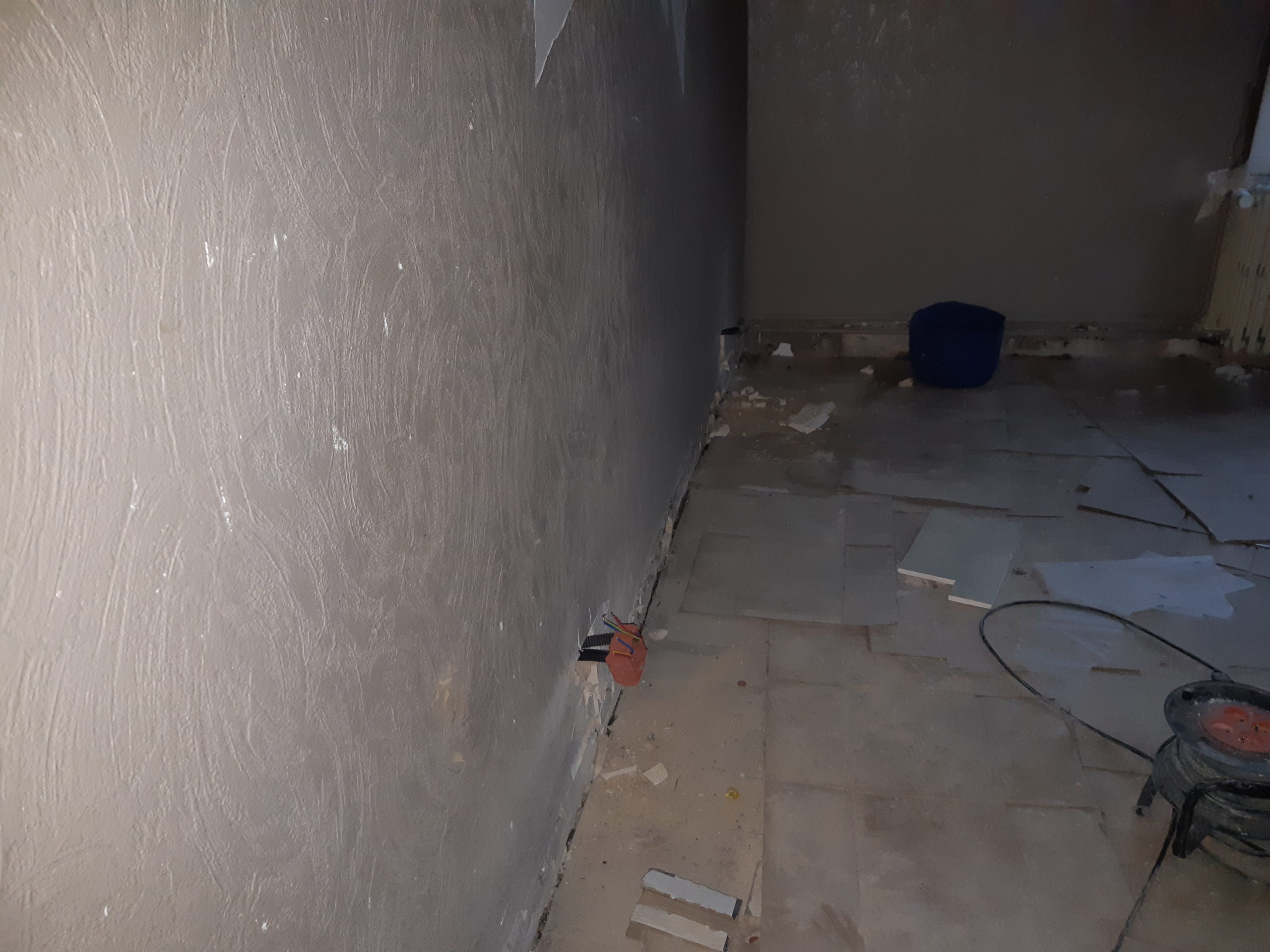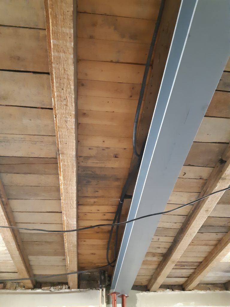 Vidage d’une rangée de scorie au plafond pour passer des éléments électriques