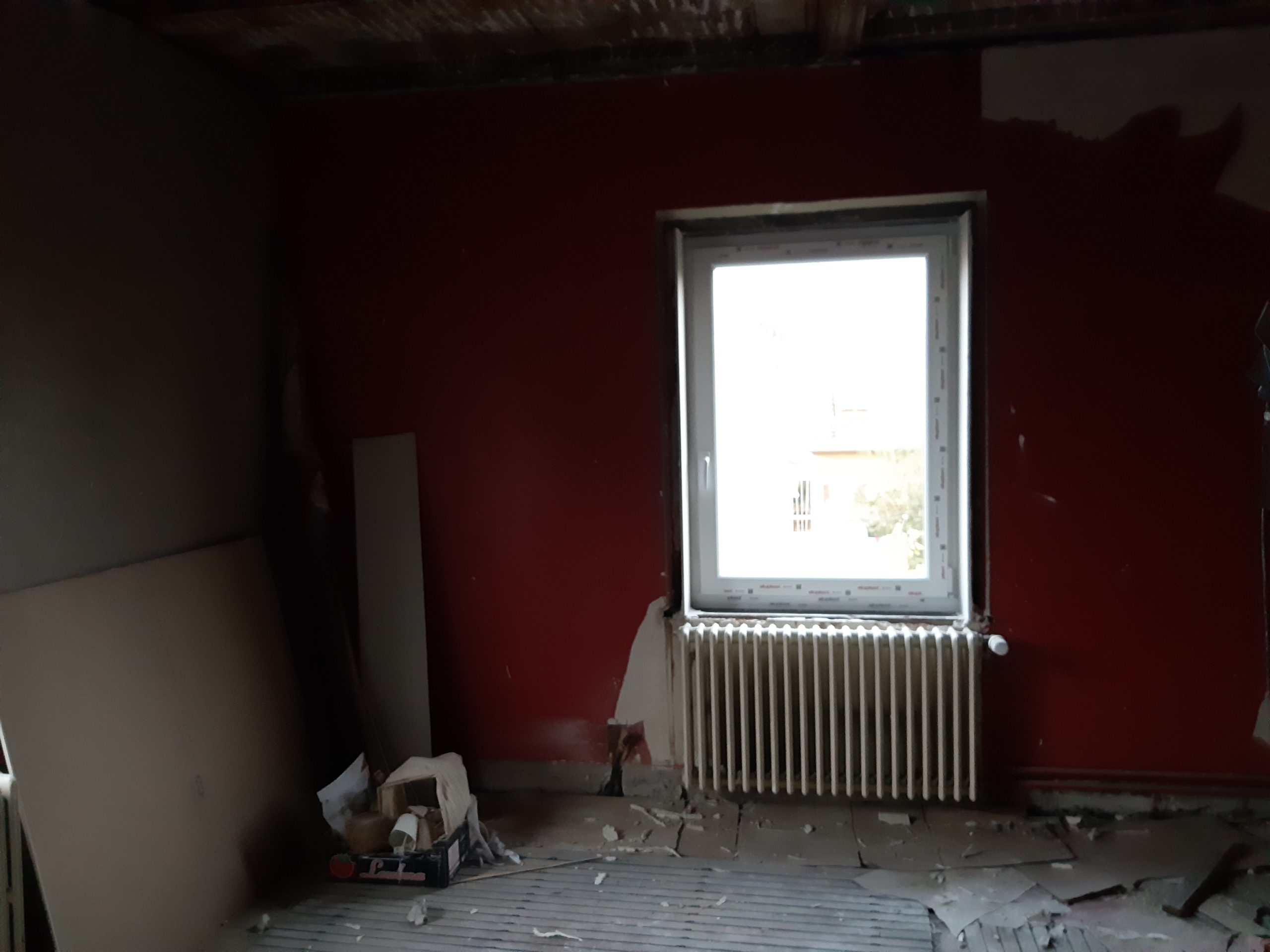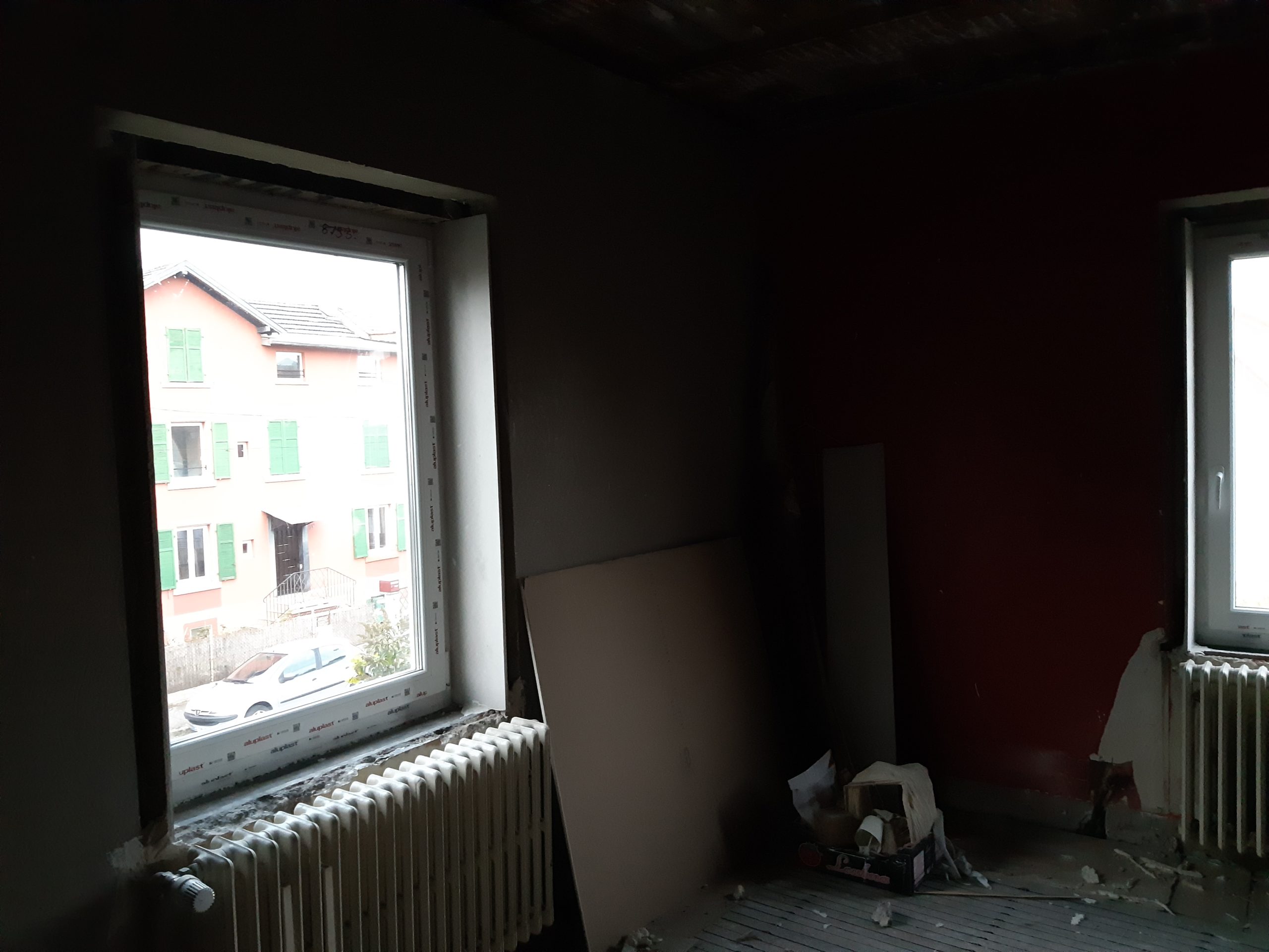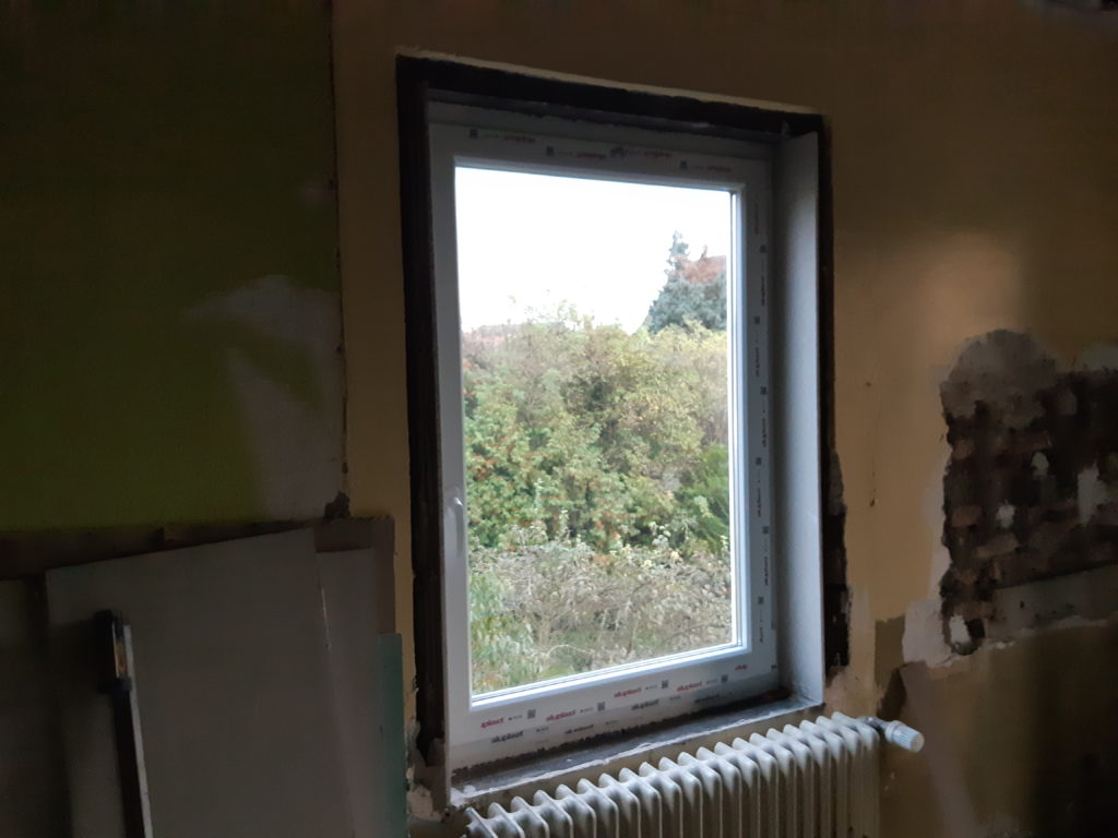 Collage des plaque de placo qui fond l’entourage des fenêtres à l’étage