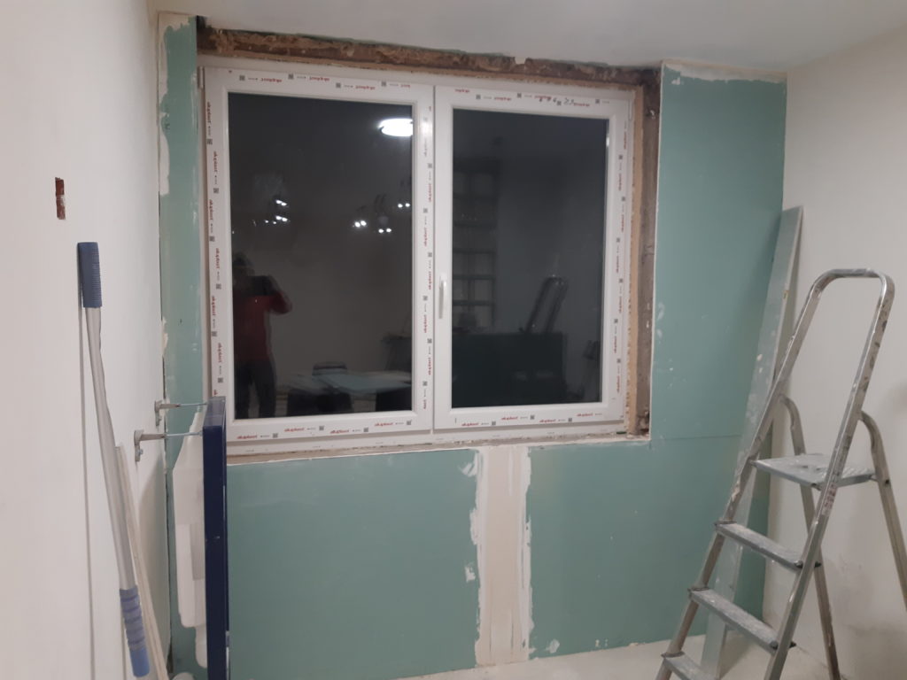 Placage de la fenetre de la chambre, côté salle de bain