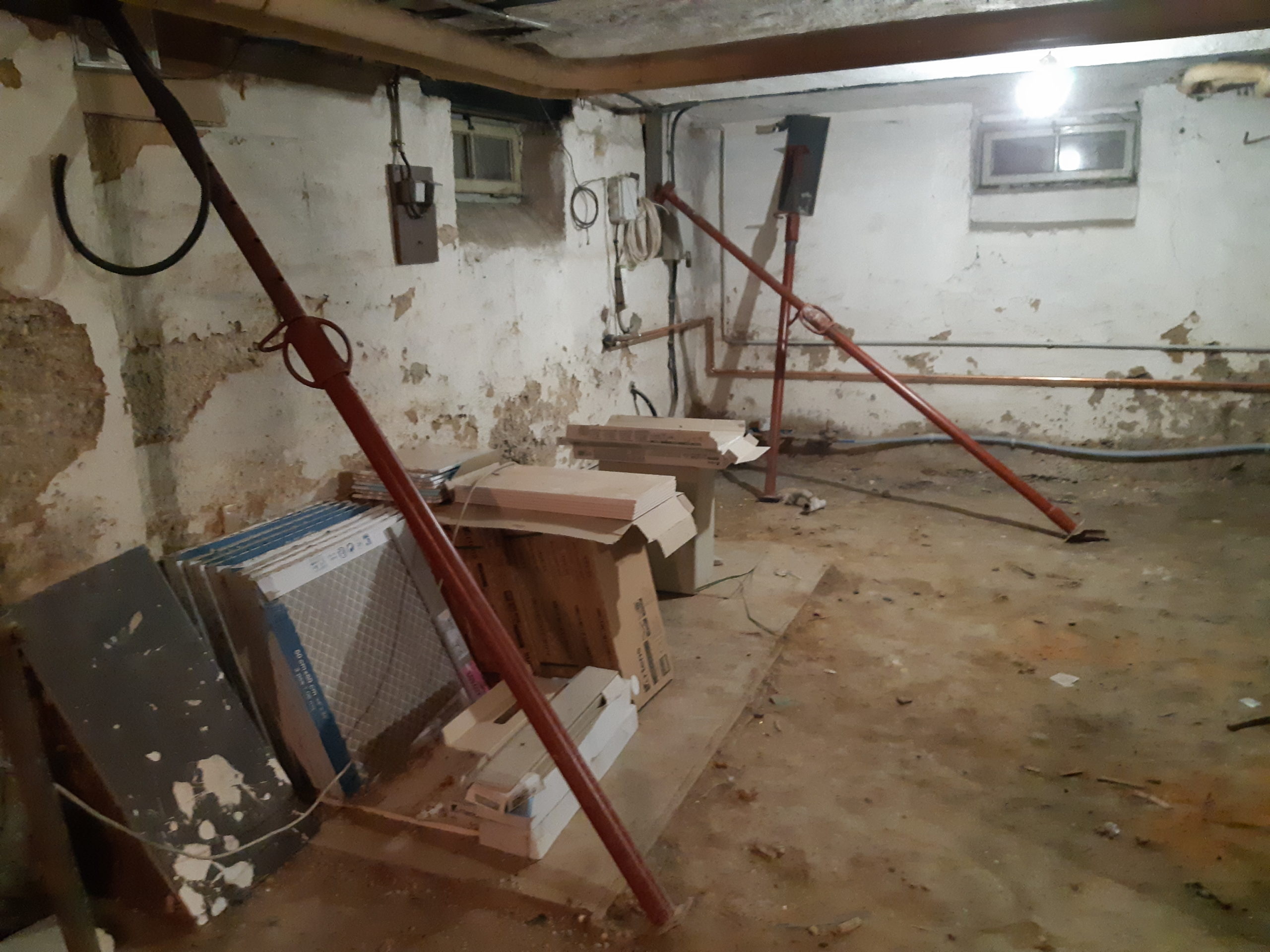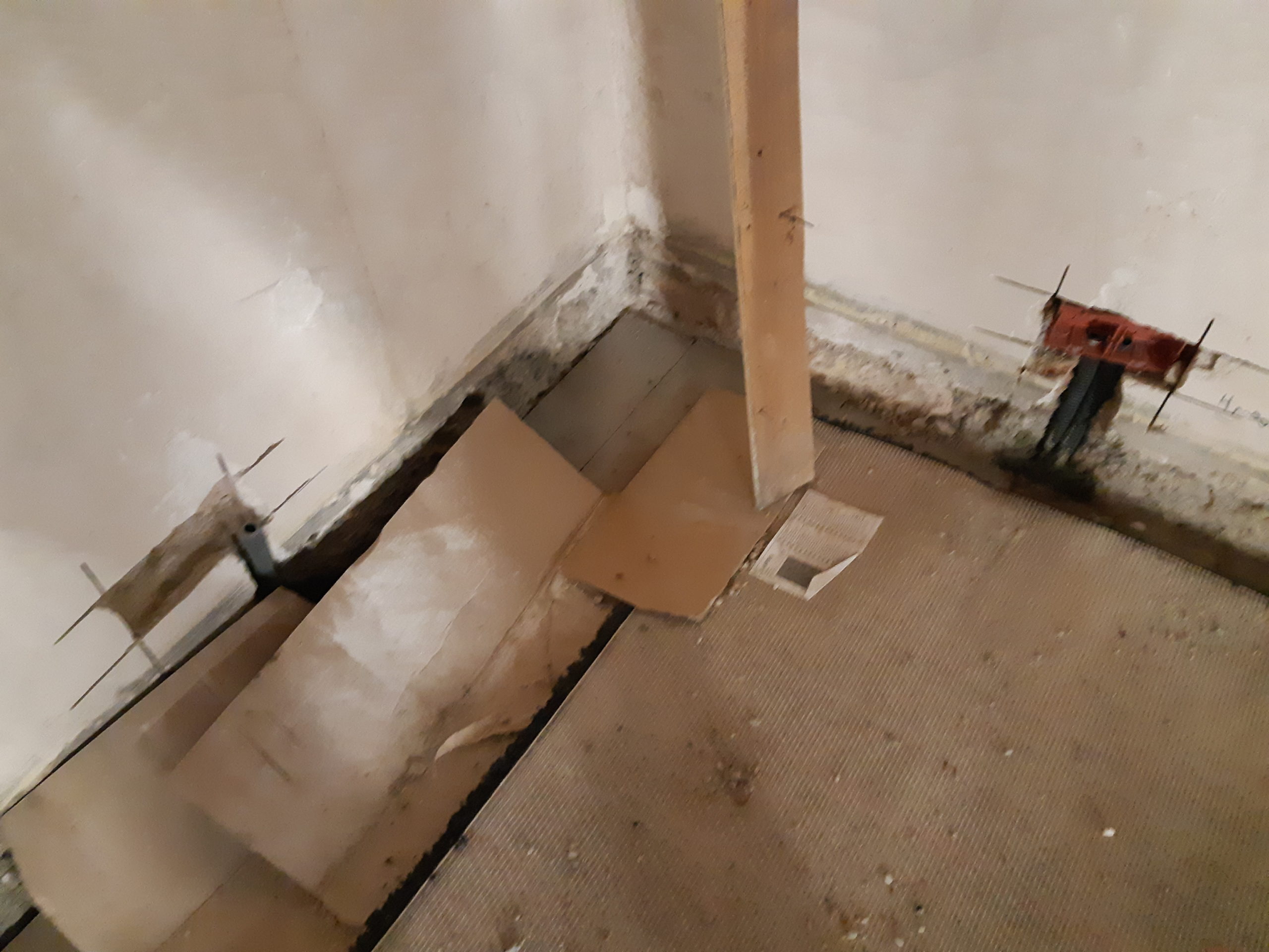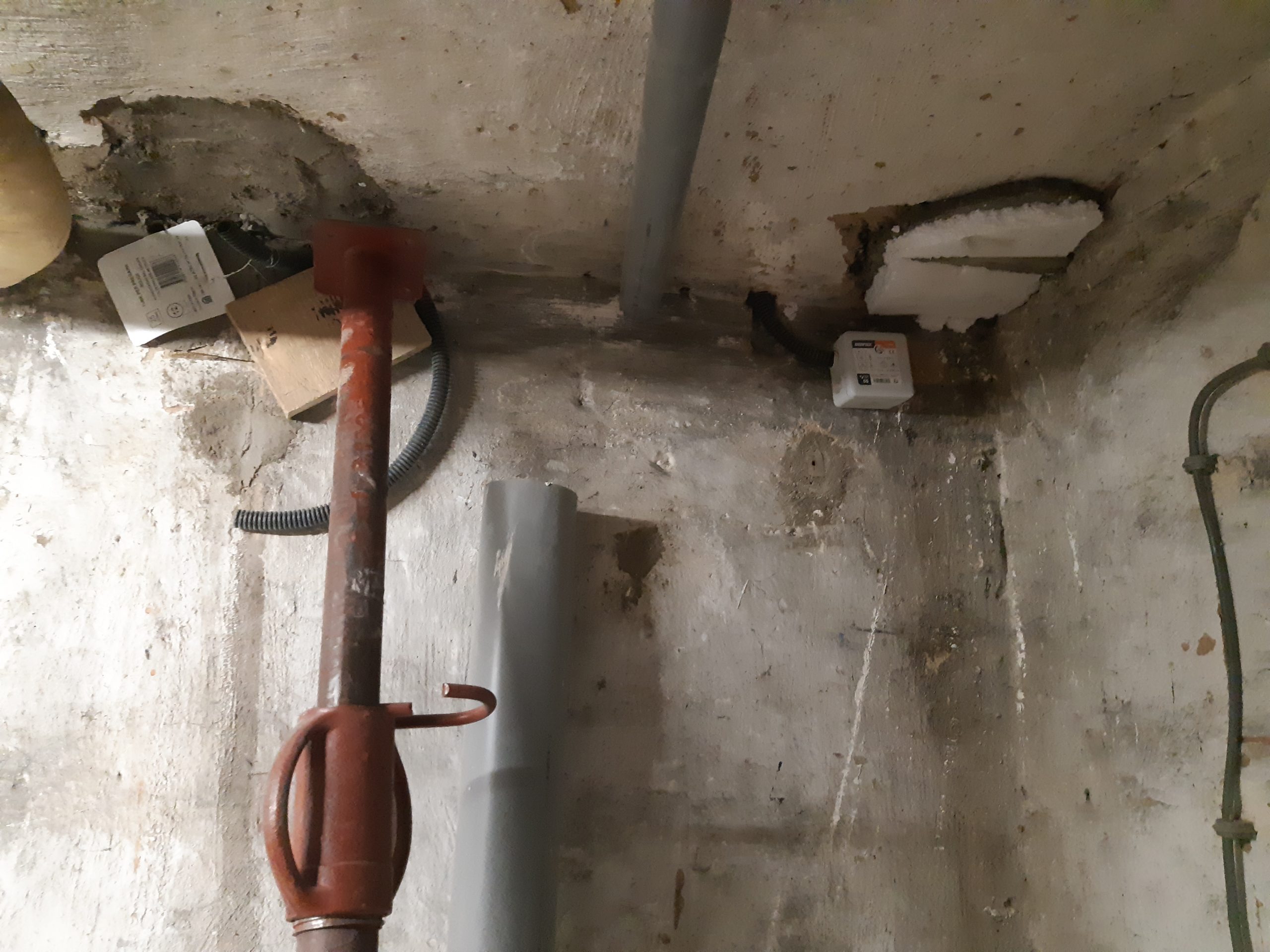 En arrivant, retrait des étais qui tenait les bétons de l’ancienne colonne d’évacuation. Le béton est bien dur mais surement pas encore sec en profondeur. Assez pour retirer les consolidation dans tous les cas.