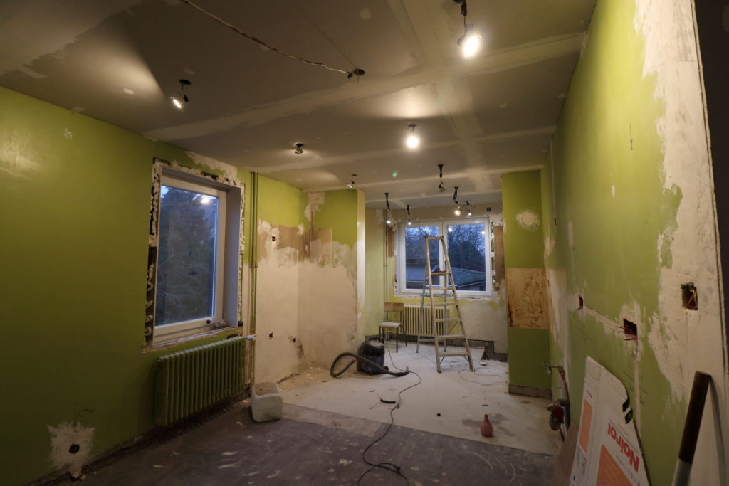 Visite de la famille de Sarrebourg pour donner un coup de main à décoller le papier peint et faire des bandes