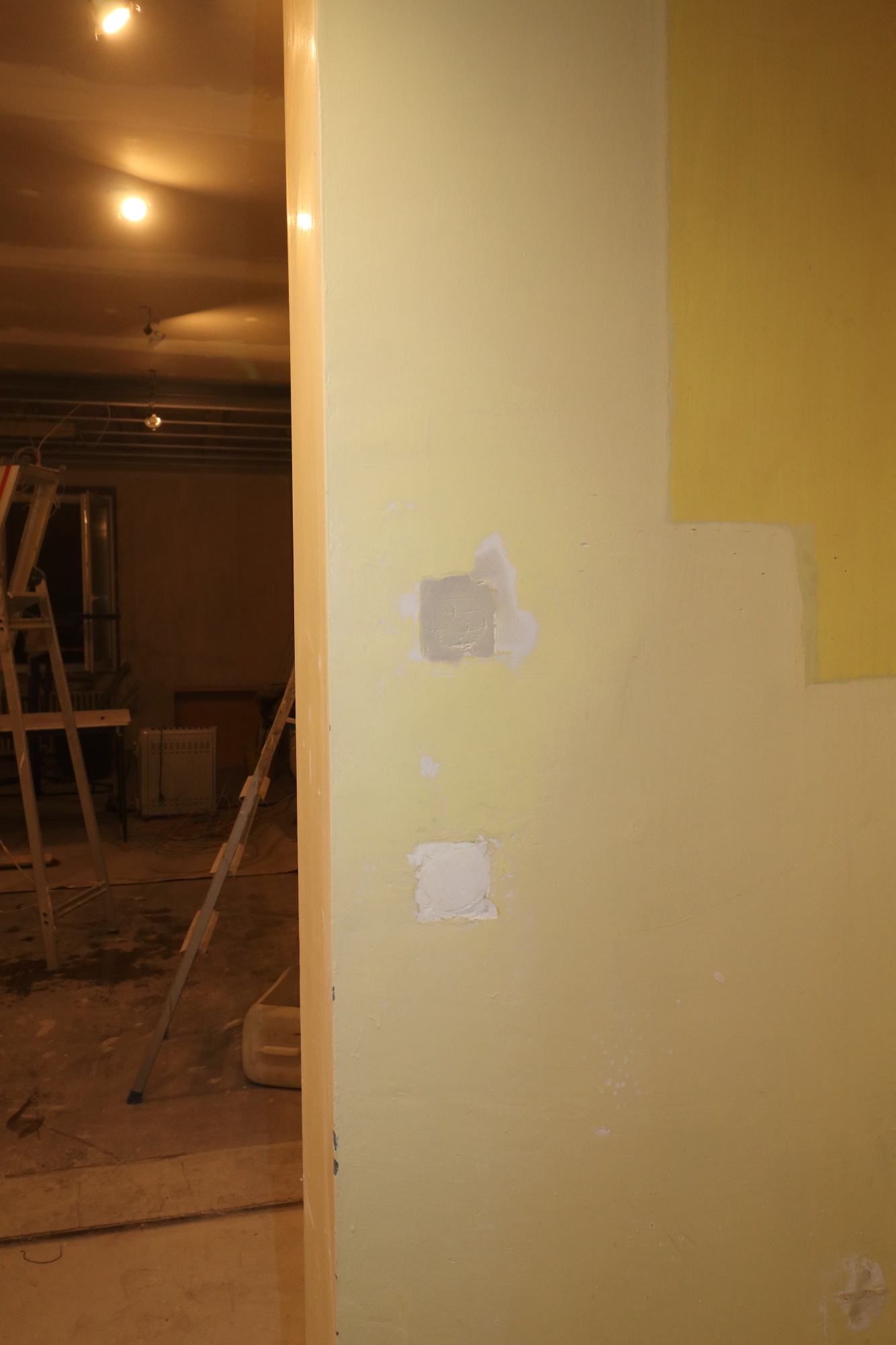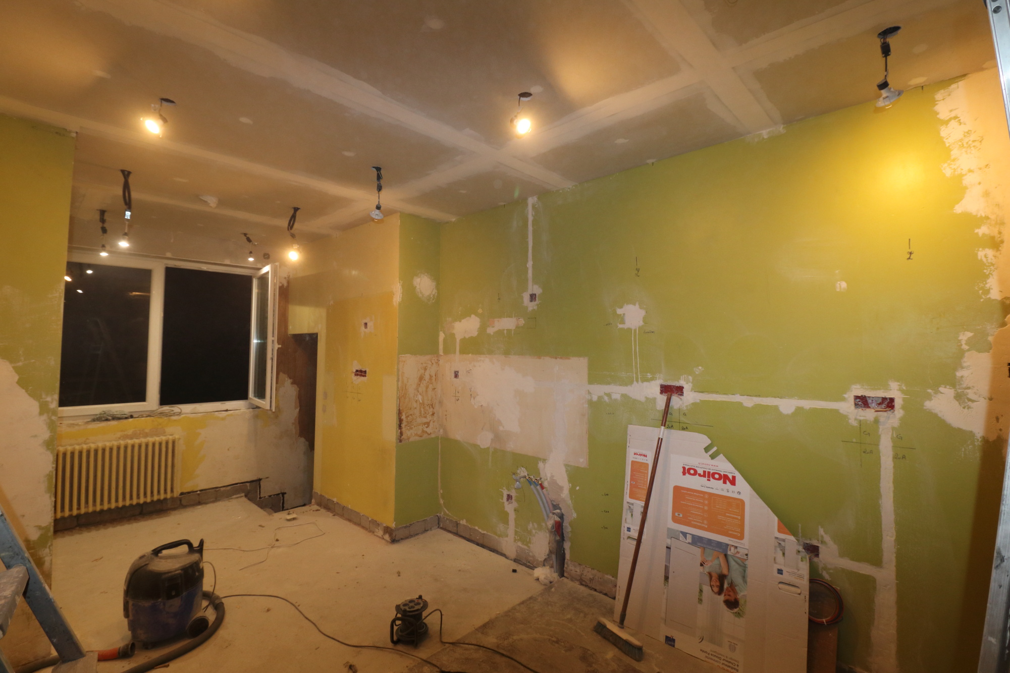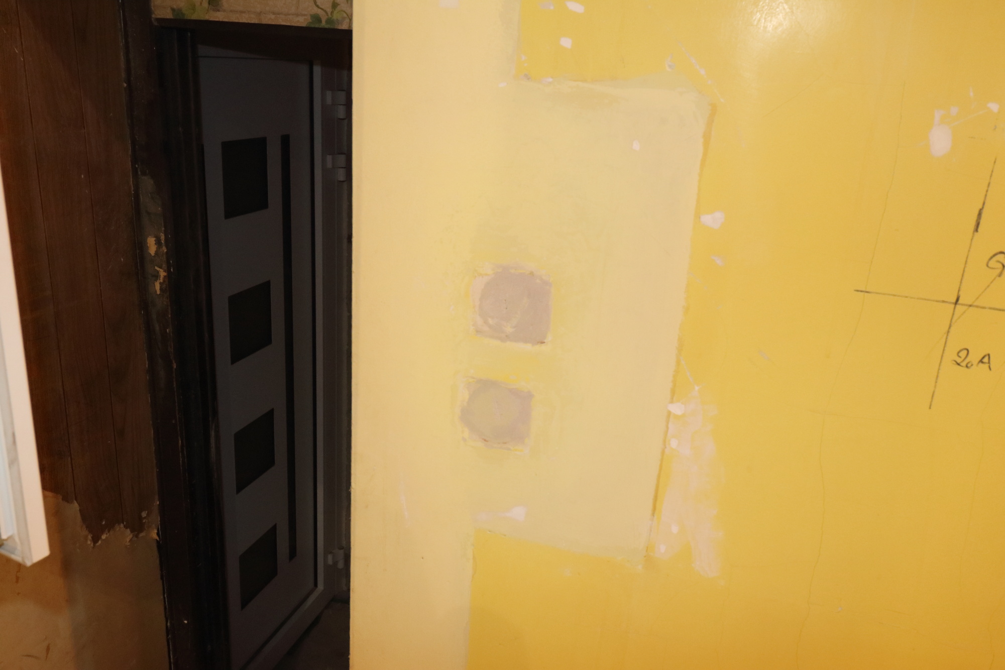 Réparation des trous dans les murs, installation de la boîte électrique de volet, suppression de vieux circuits électriques.