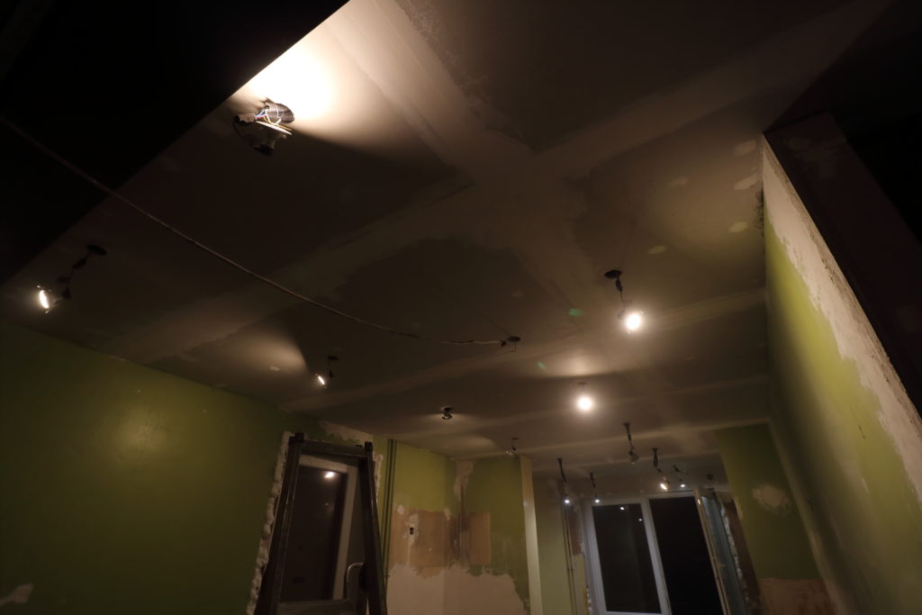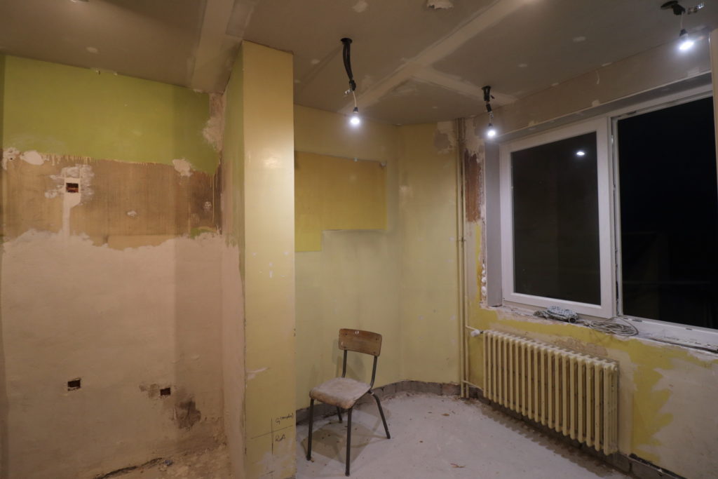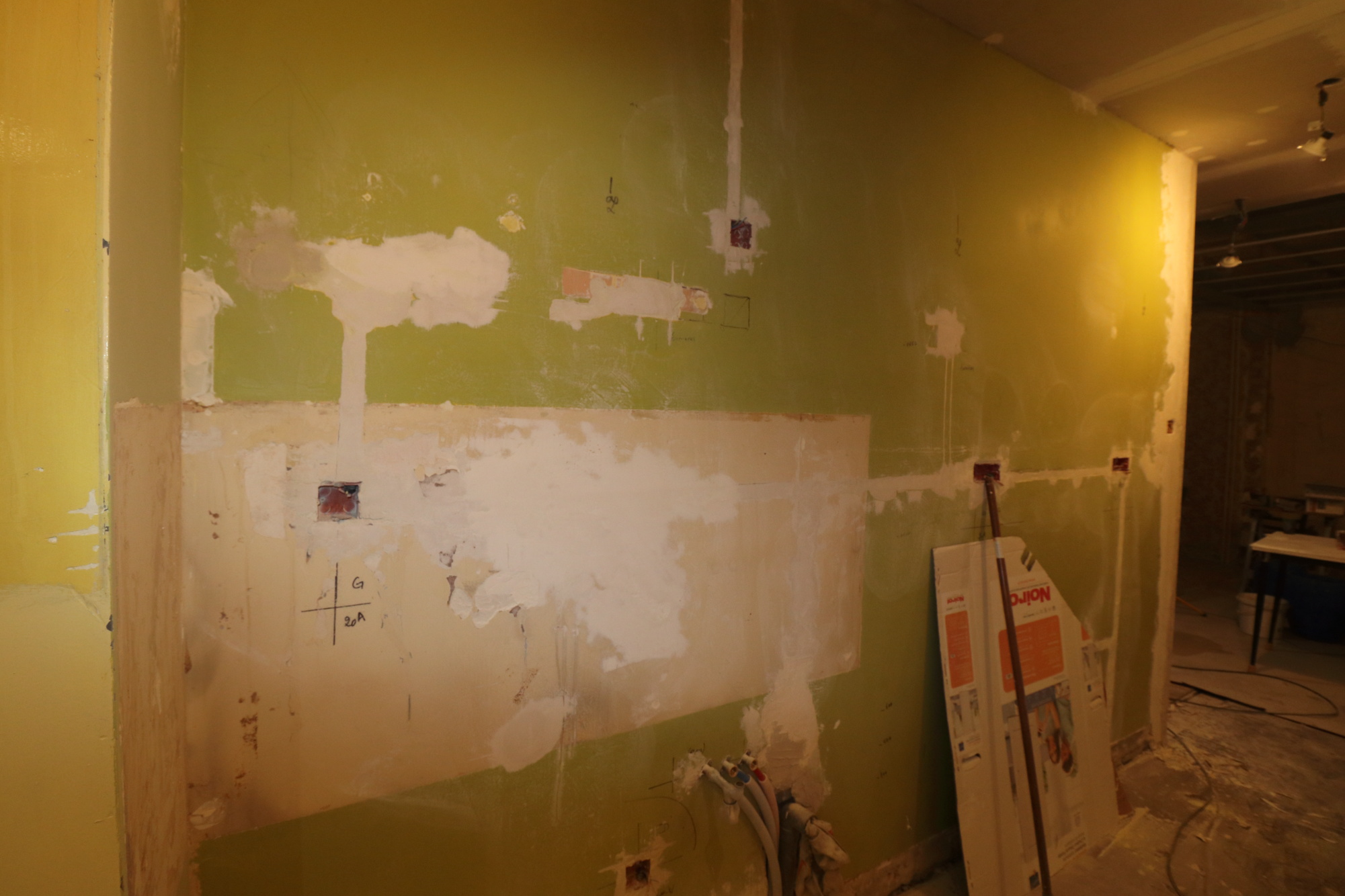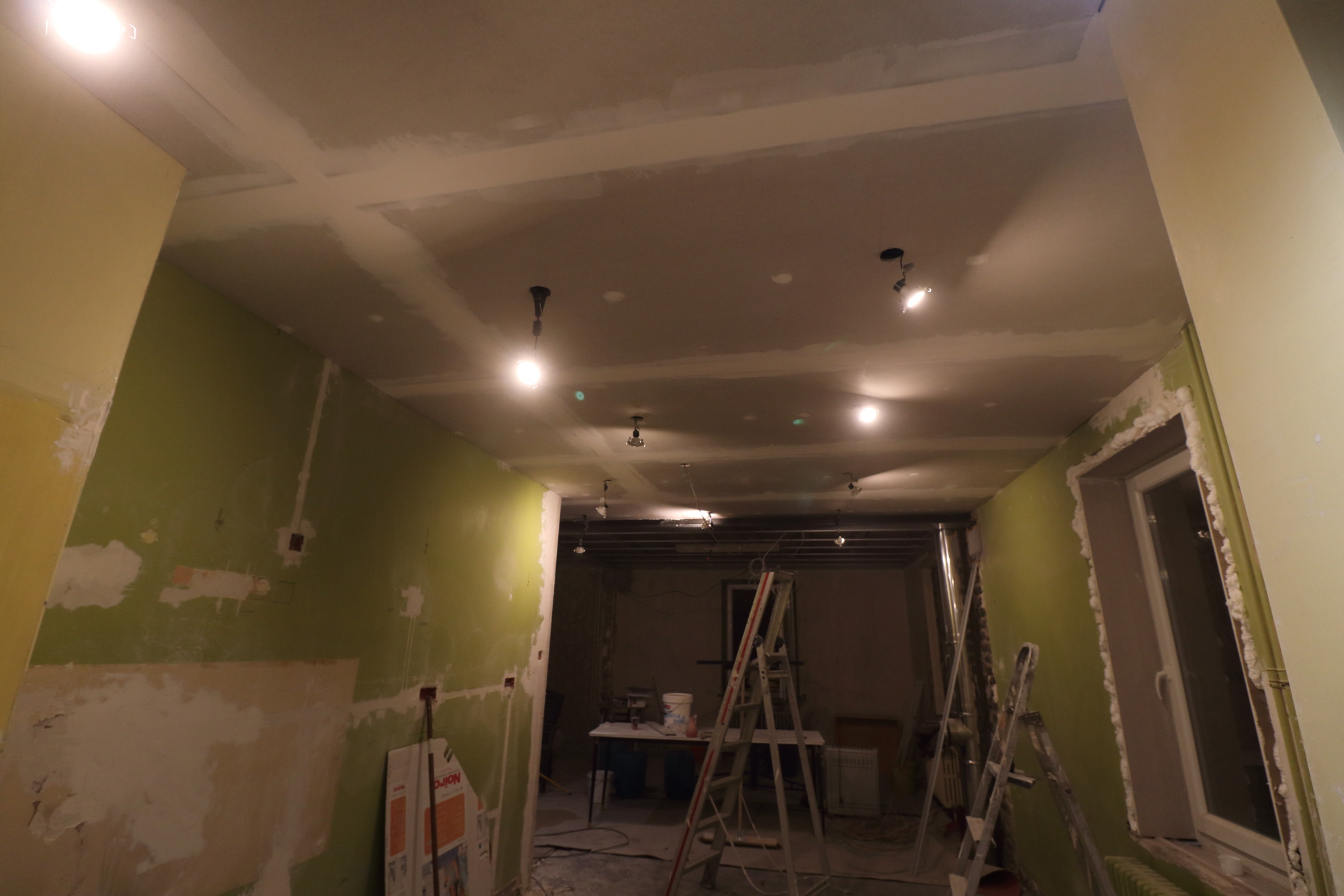 Réparation des trous dans les murs, installation de la boîte électrique de volet, suppression de vieux circuits électriques.