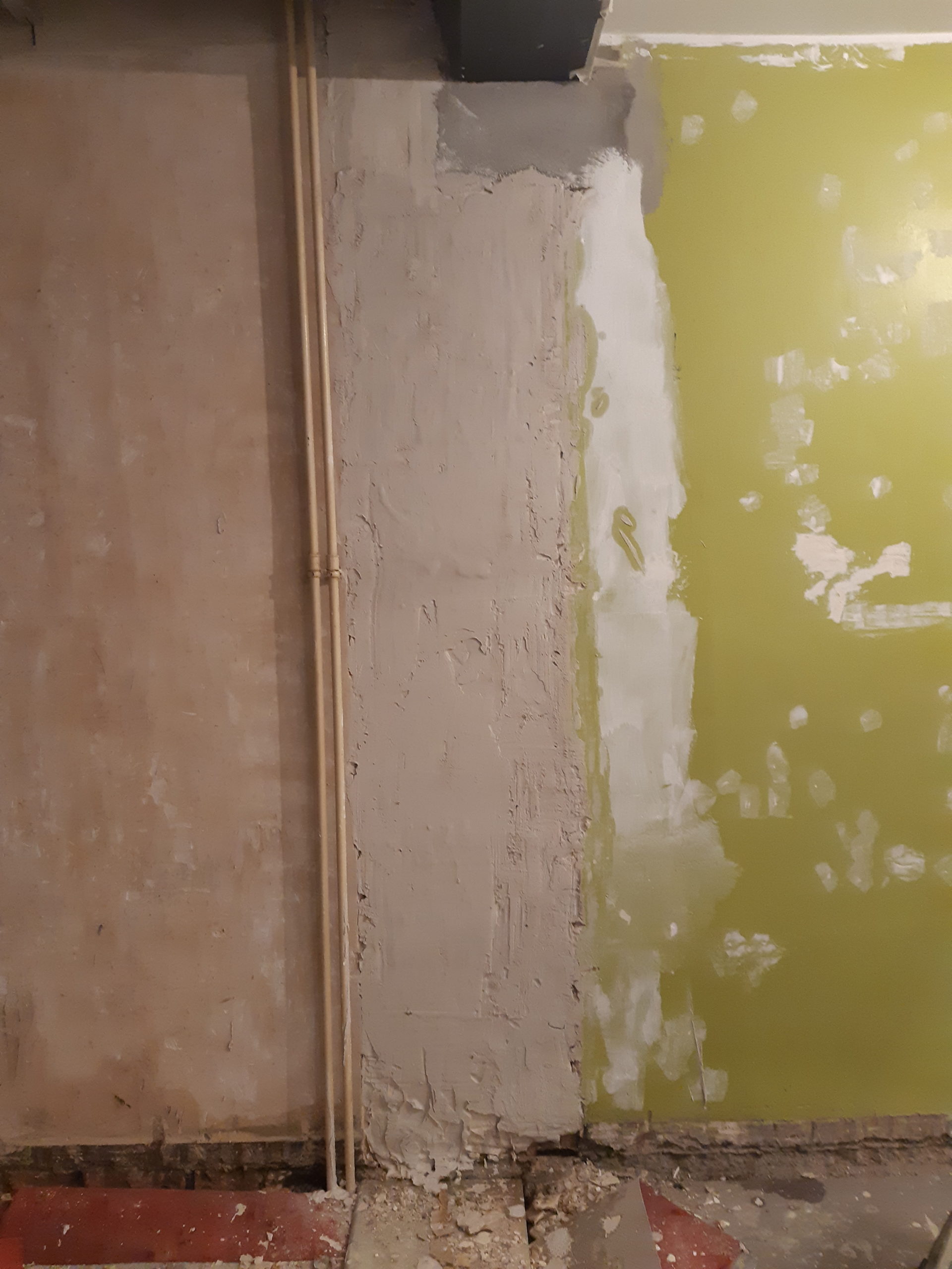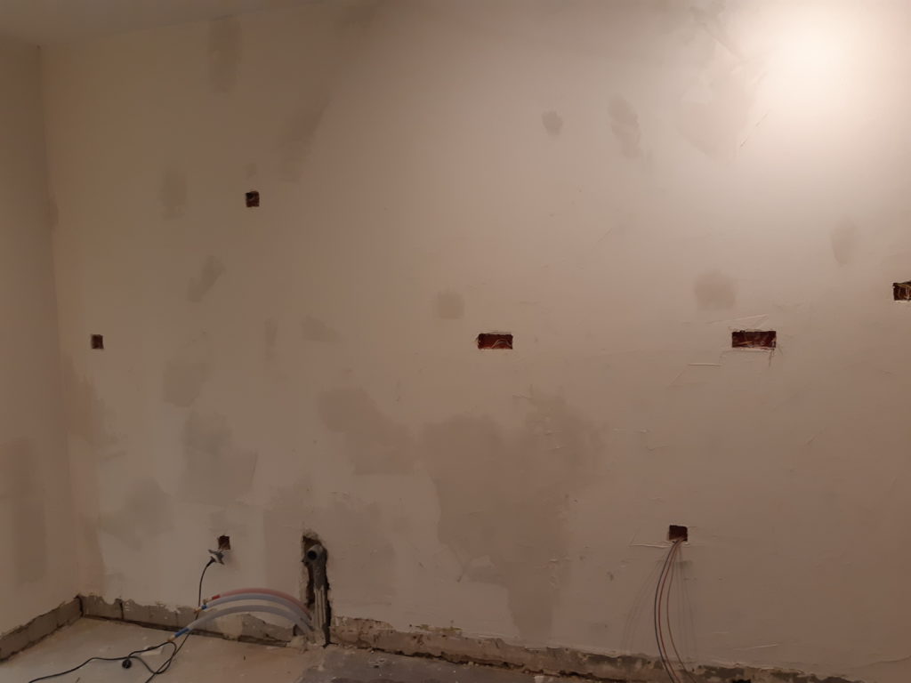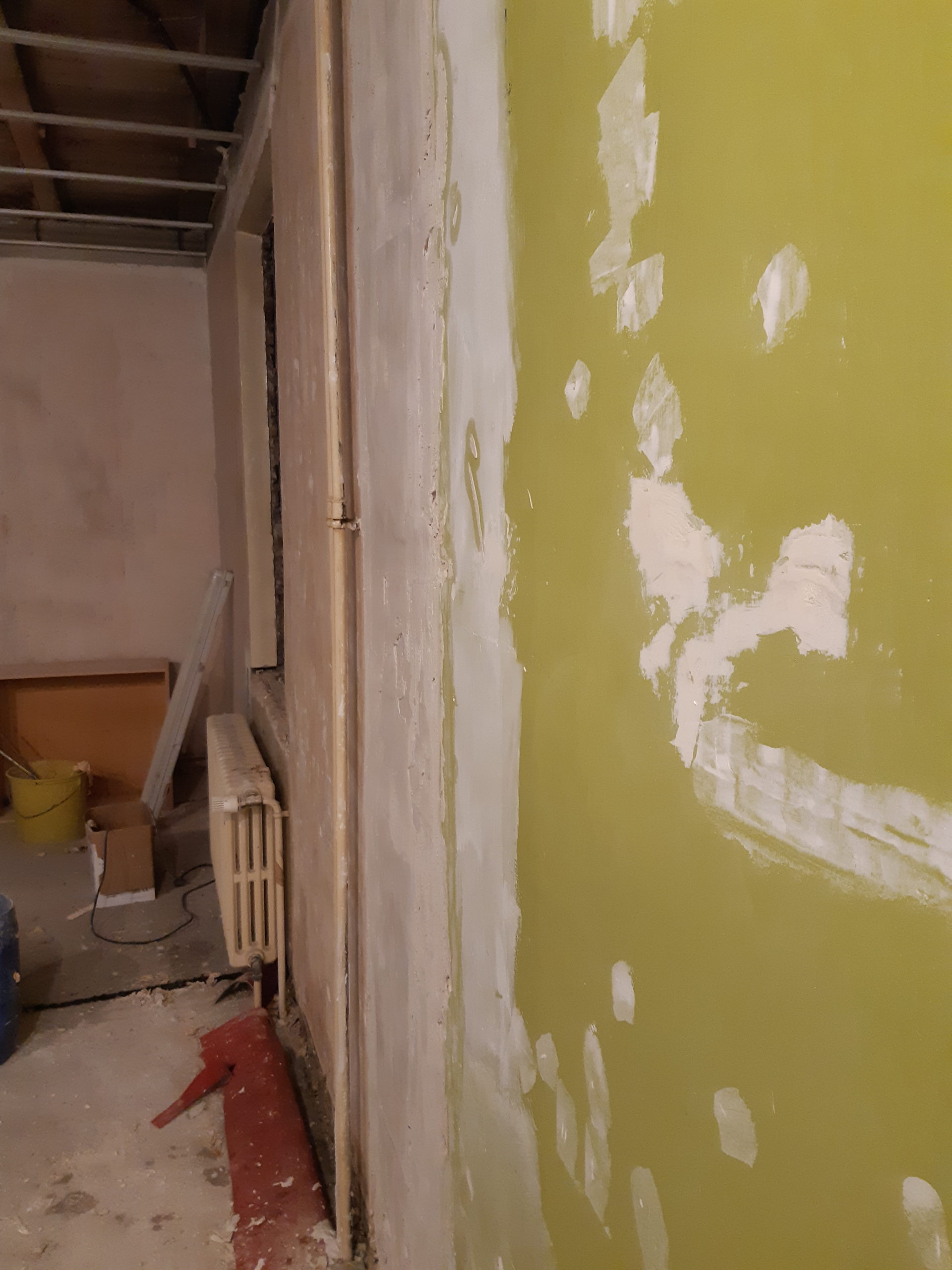 Enduits sur les murs, sûrement la fin avant le ponçage