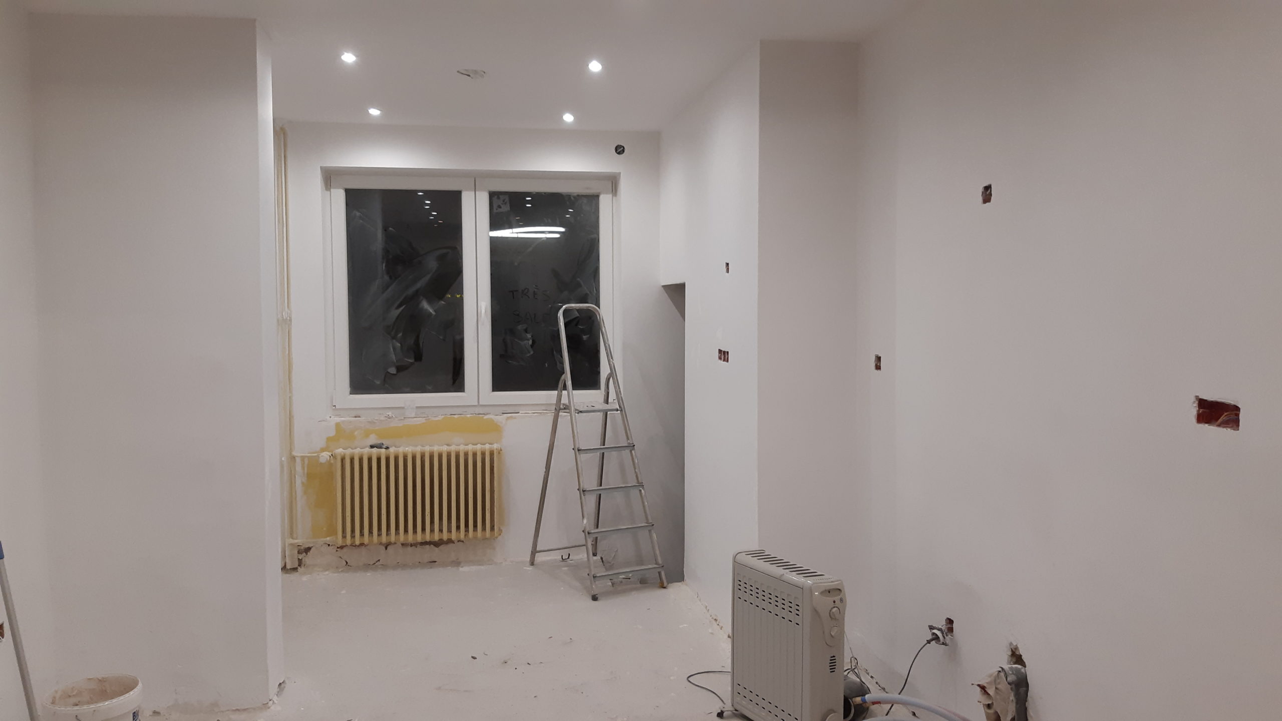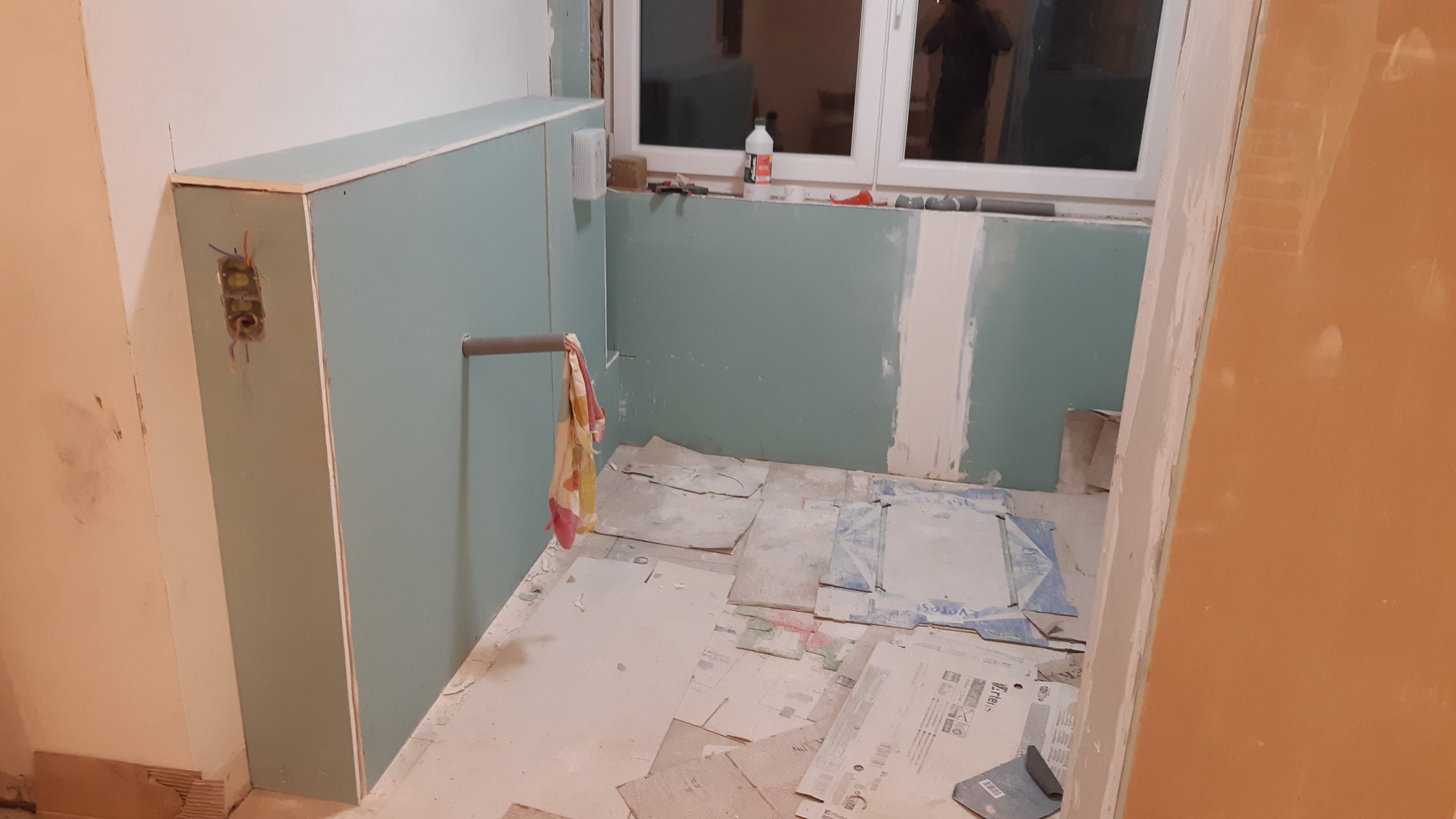 Pour finir la journée, finition du placo autour du coffre dans la chambre