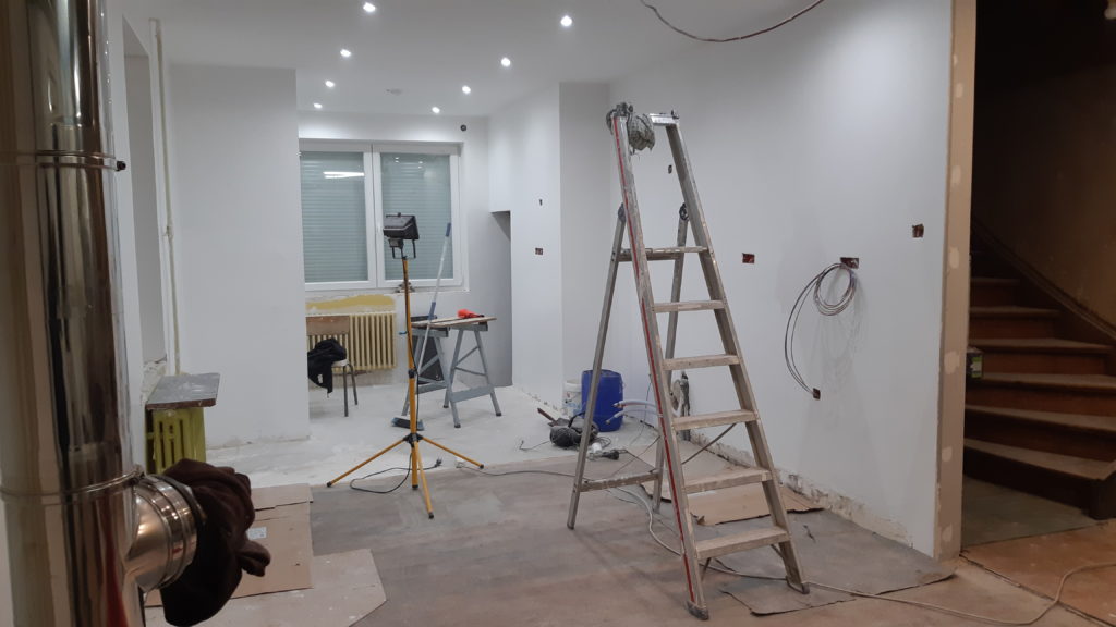 Et pour finir la journée, préparation des supports pour le tour de la trappe du grenier dans la cage d’escalier