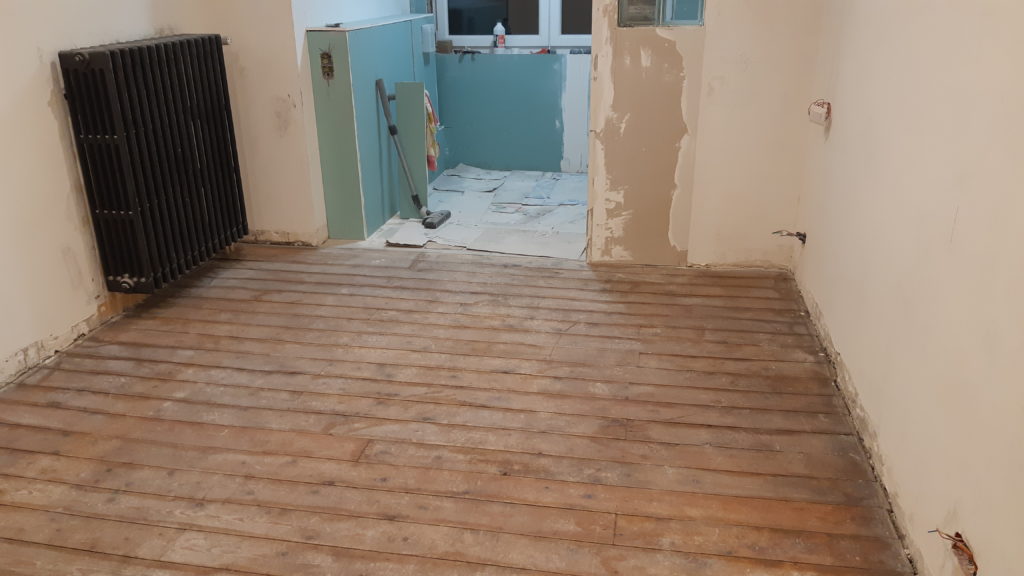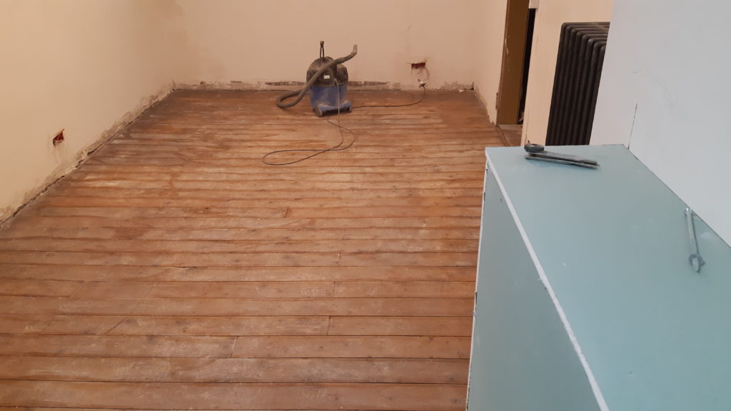 Un coup de ménage en haut pour poncer le sol demain si nous avons le temps