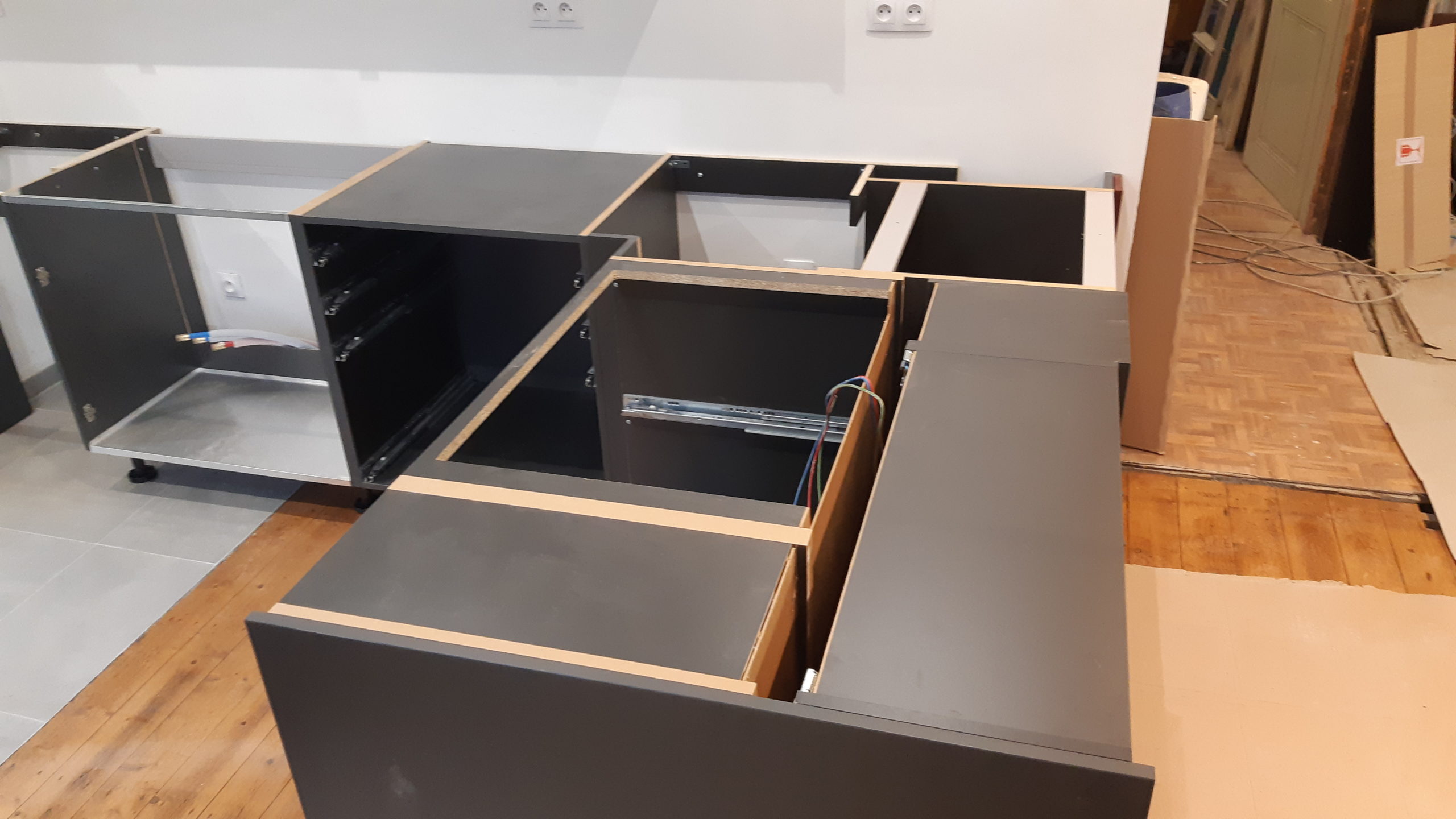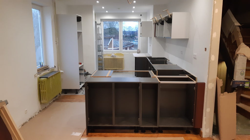 Premier jour de pose de la cuisine