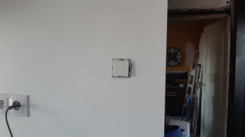 - Branchement des 2 télévariateurs pour piloter l’intensité lumineuse du salon et de la salle à manger. Testé, ça fonctionne super bien