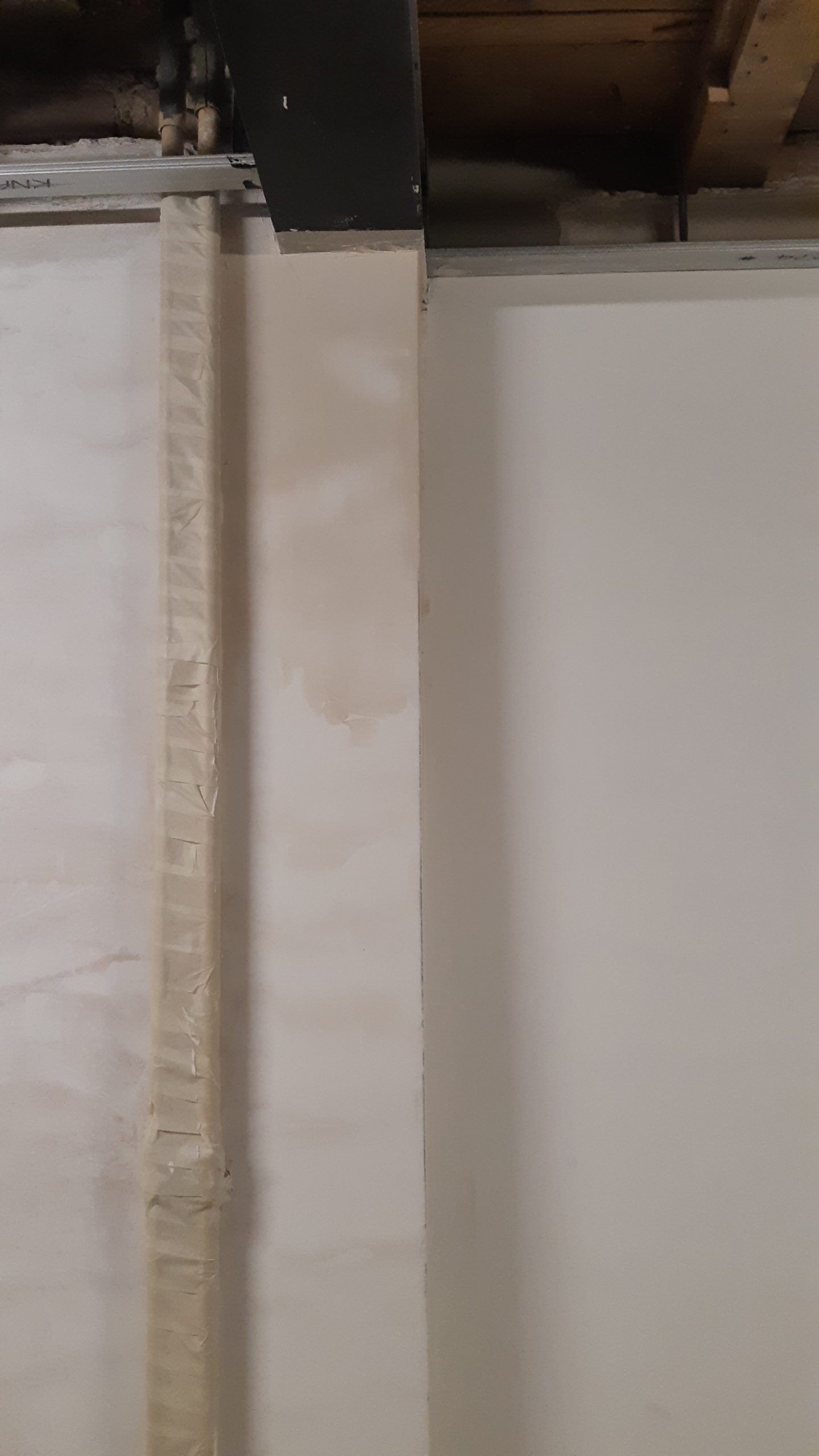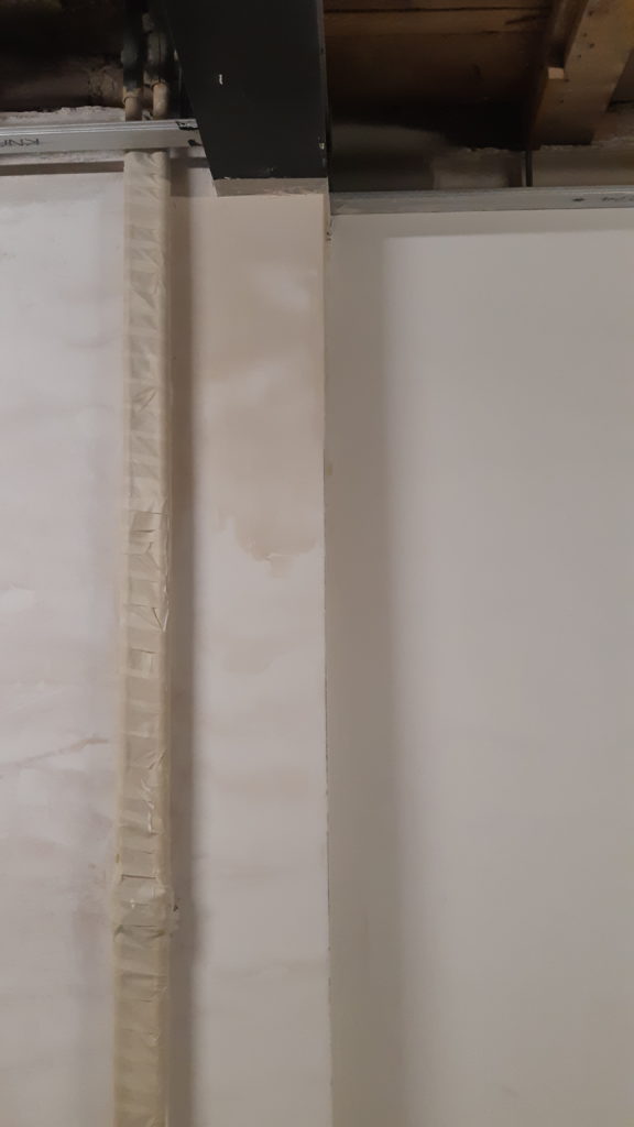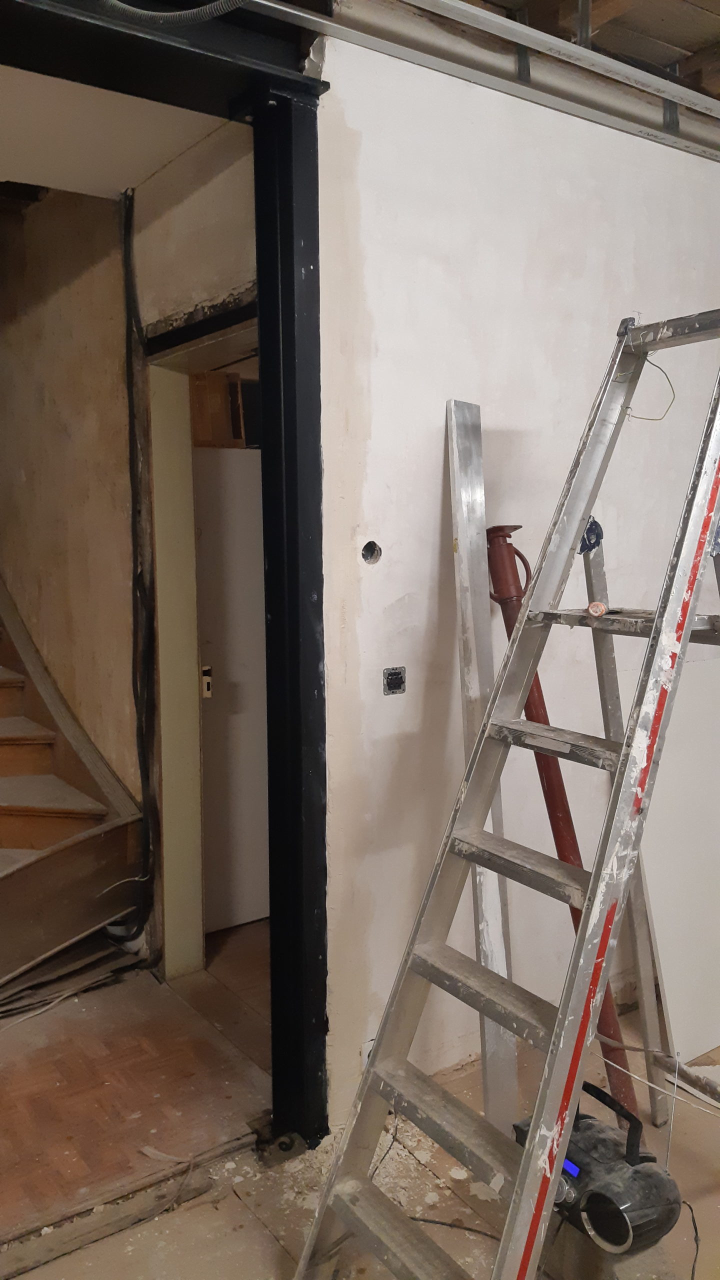 Un peu de plâtre pour finir la jonction des deux murs des deux pièces ouvertes et plâtre autour du jambage