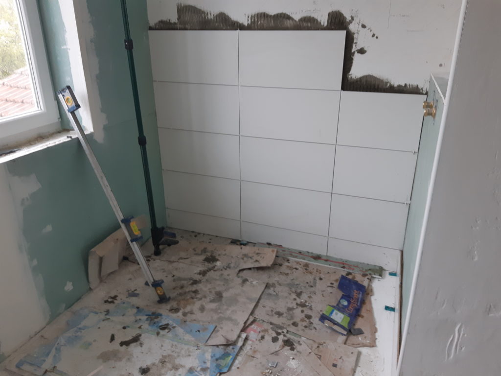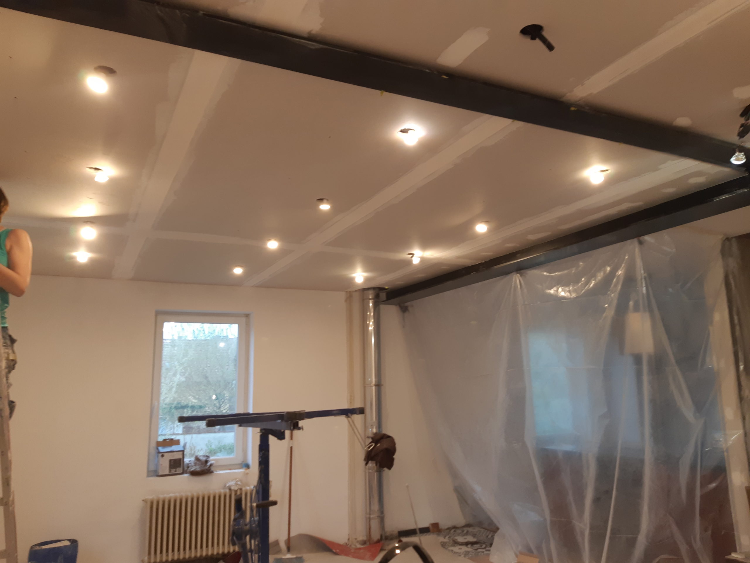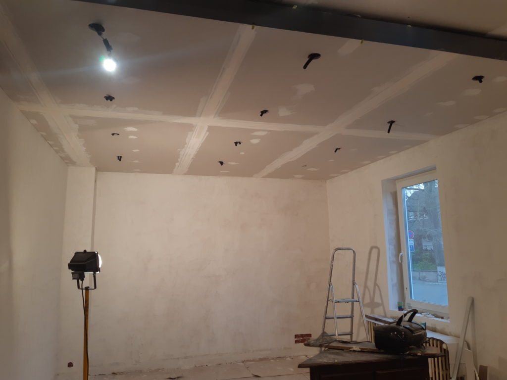 Enduit et bandes au plafond dans le salon et la salle à manger