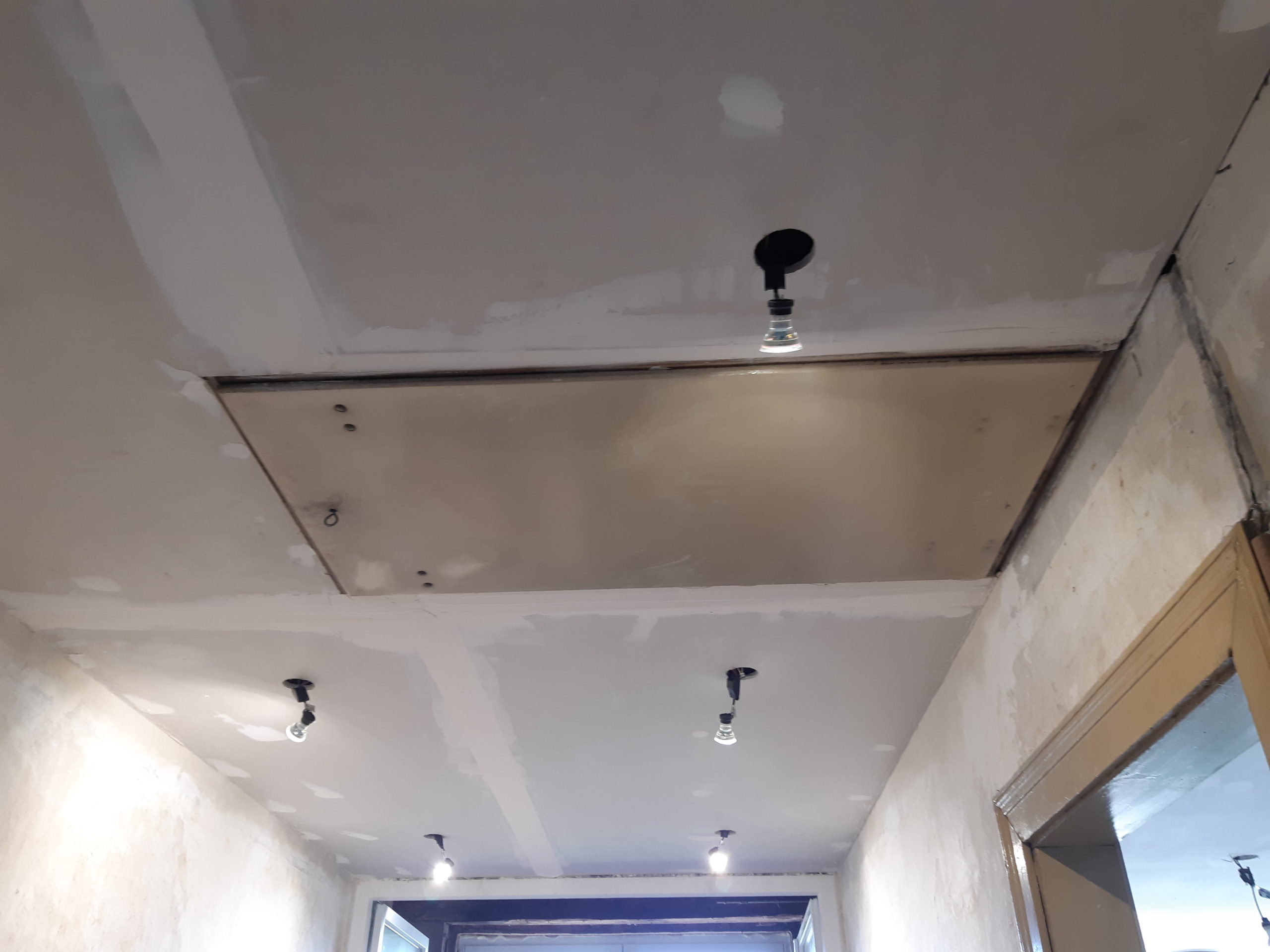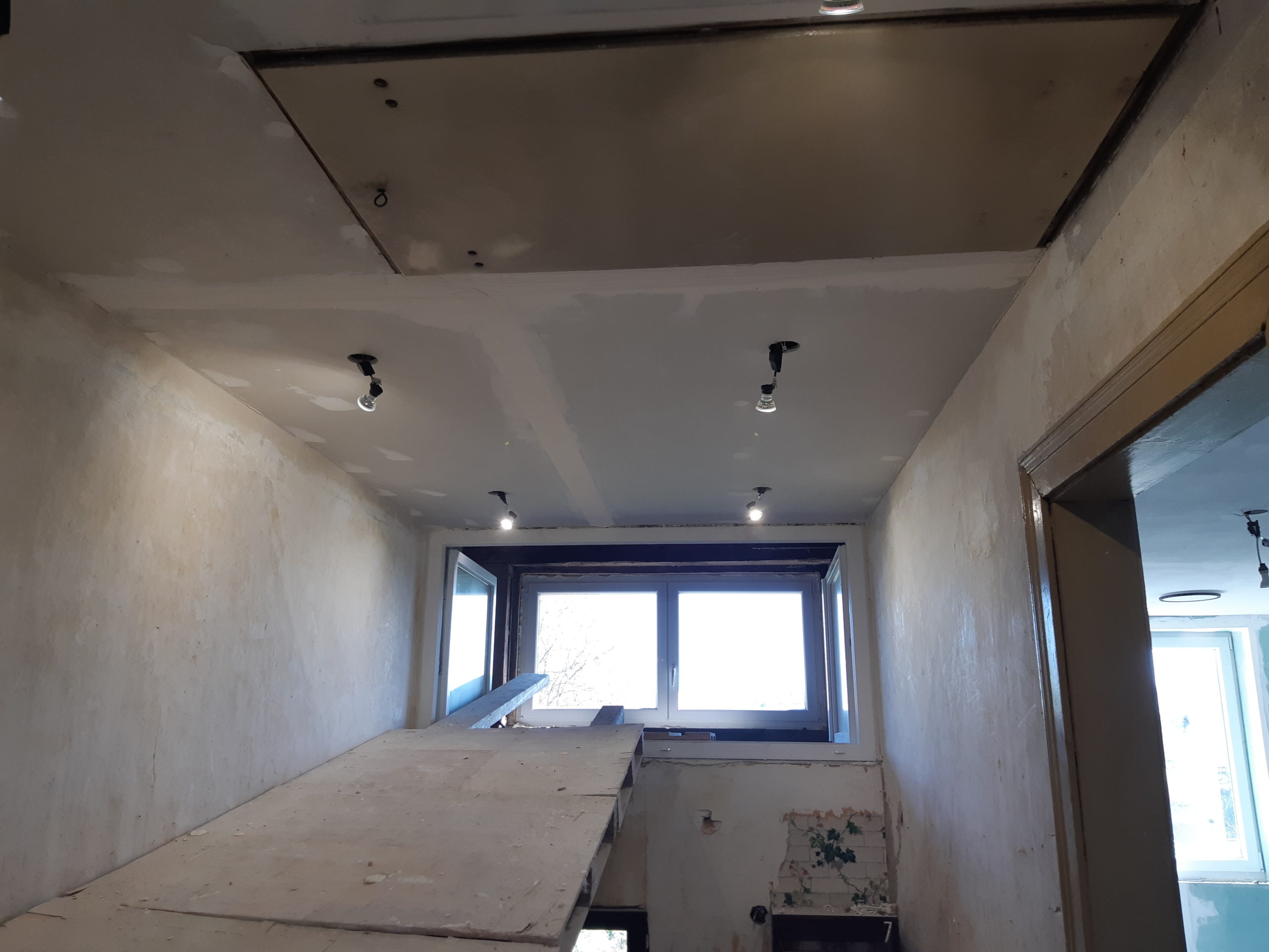 Finition avec les bandes et le plâtre sur les côtés, restera à poncer