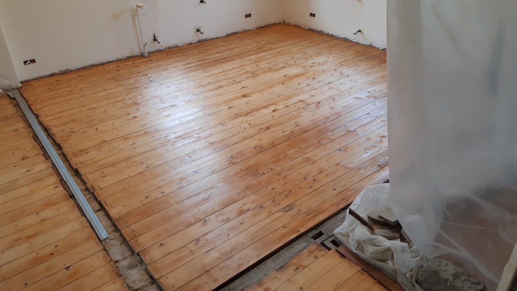 Première couche de vitrificateur dans le salon