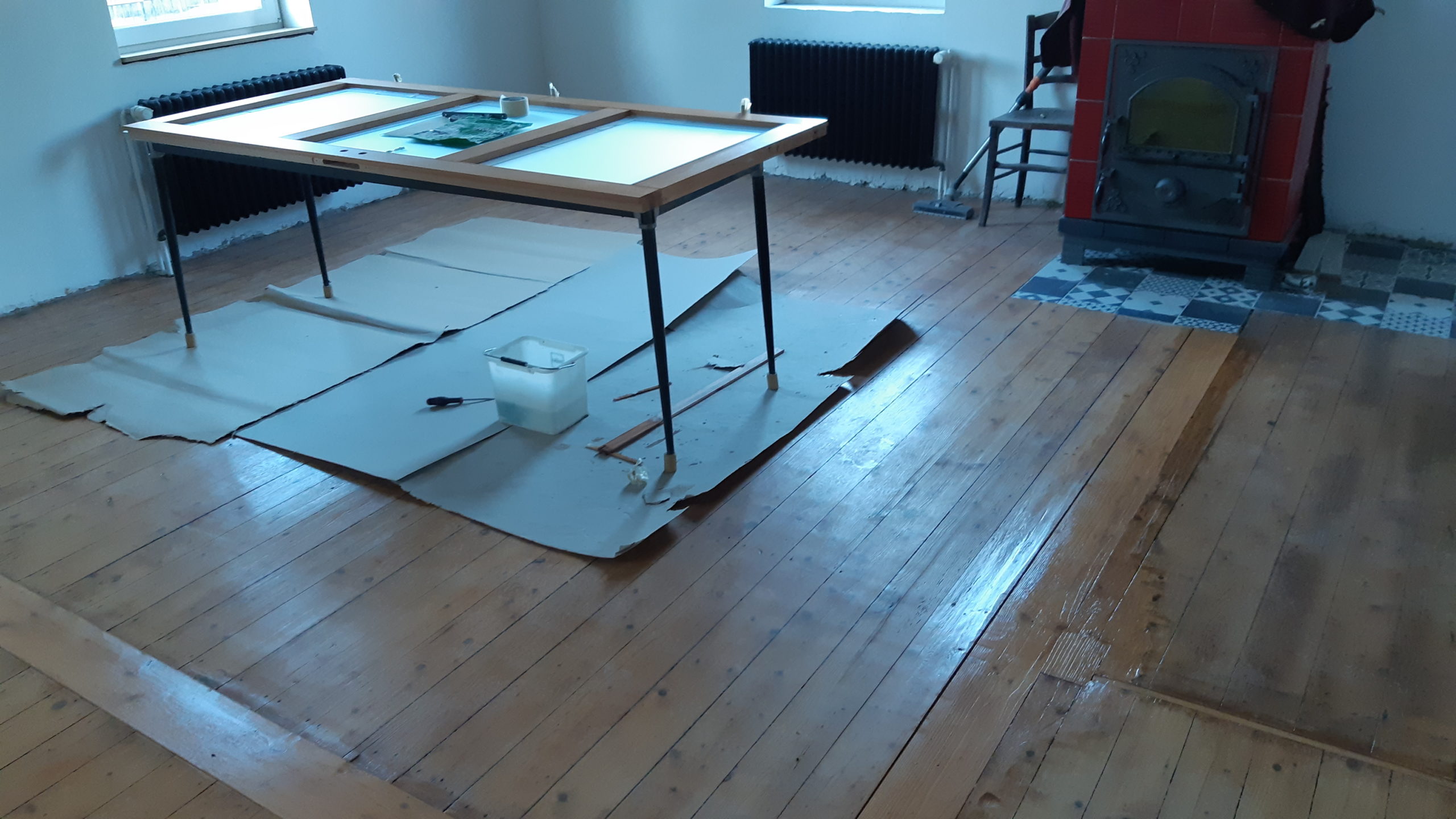 Une couche supplémentaire pour rattraper les différences de couleurs sur le sol du salon