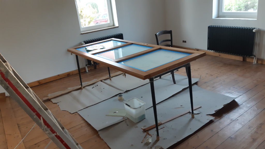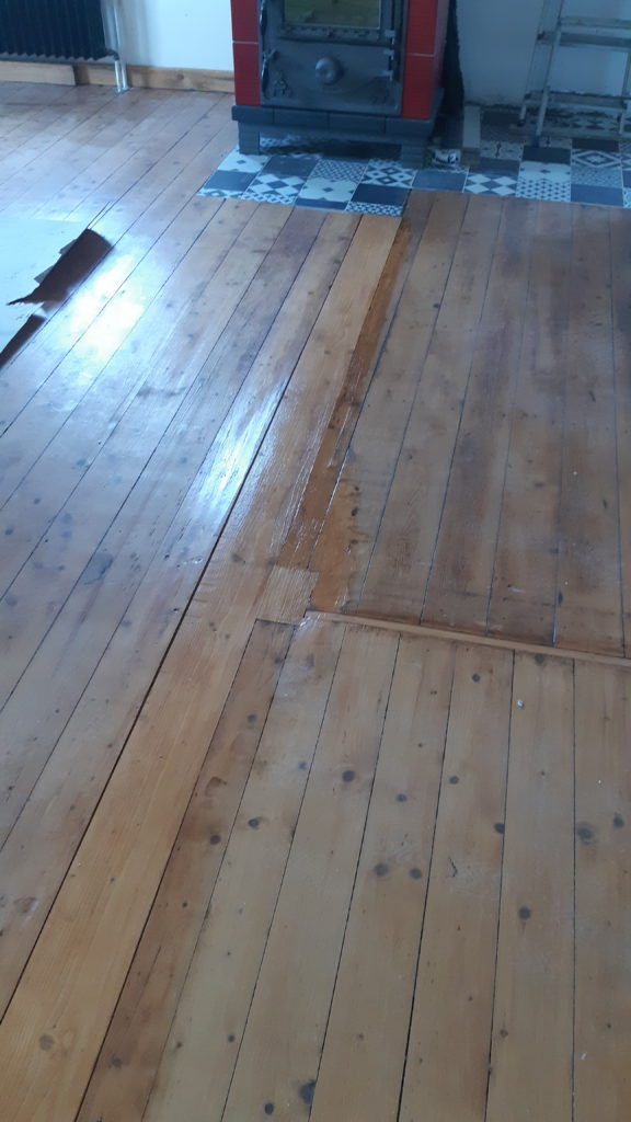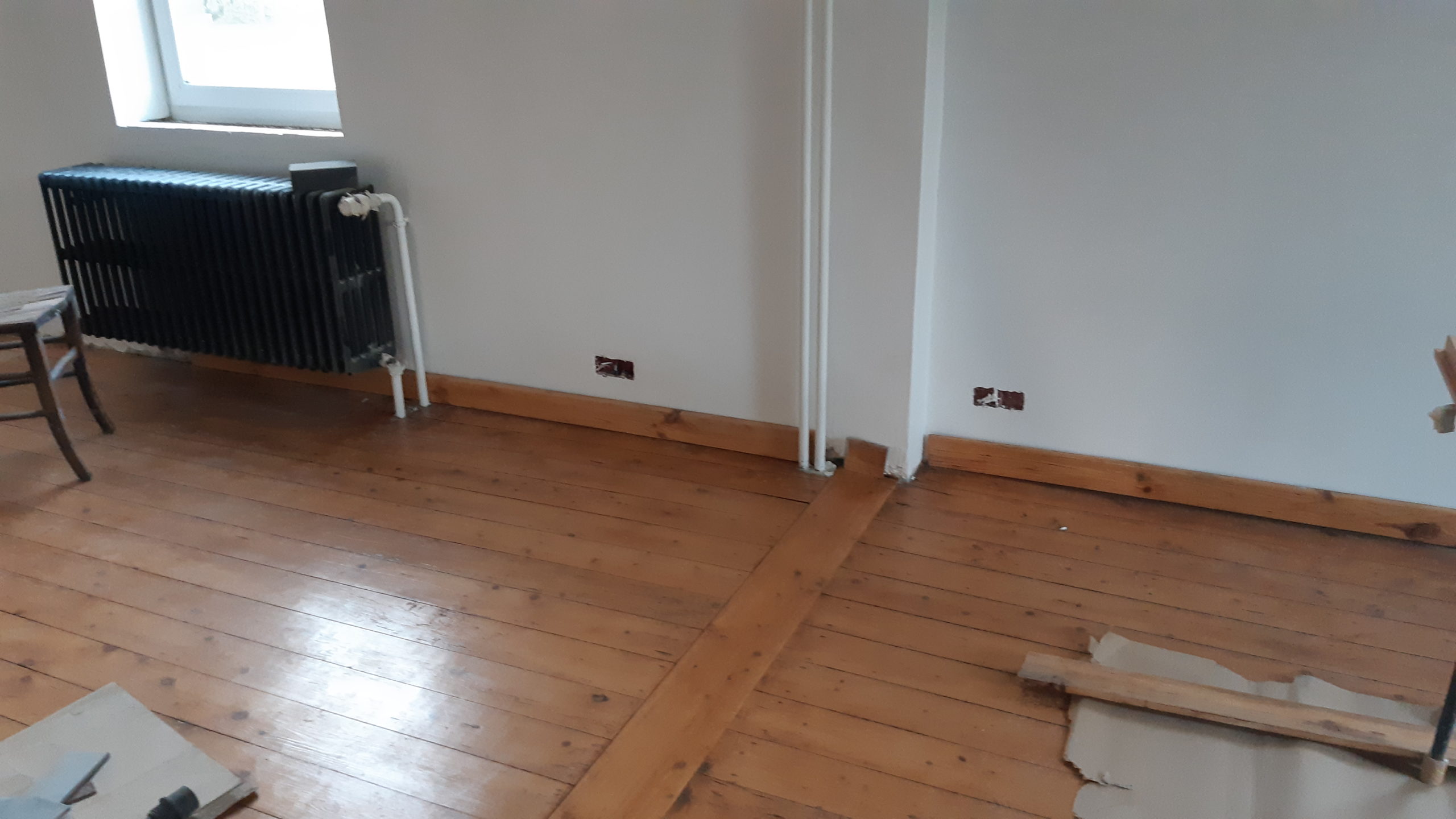 2 couches de vitrificateur sur l’autre côté de la porte et ajout de 2 couches pour certains point du raccordement de sol