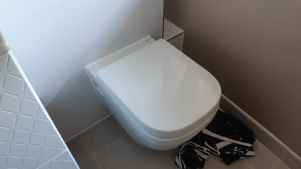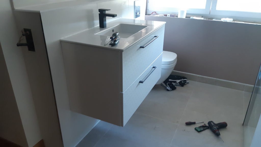 - Silicine sur le WC et installation des poignées du meuble de salle de bain