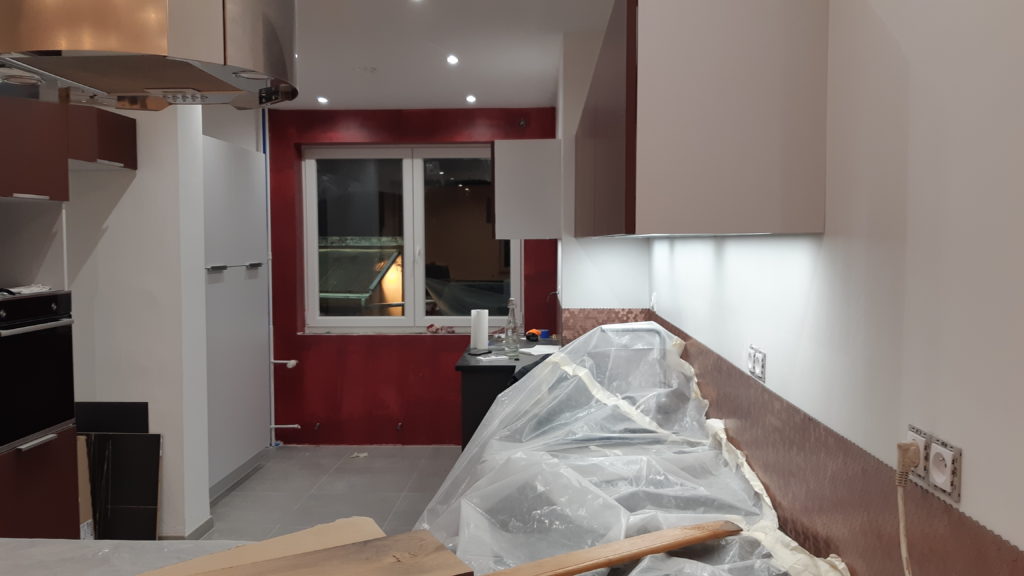 il y avait de l’aide aujourd’hui ! Peinture dans le recoin de la cuisine et du couloir