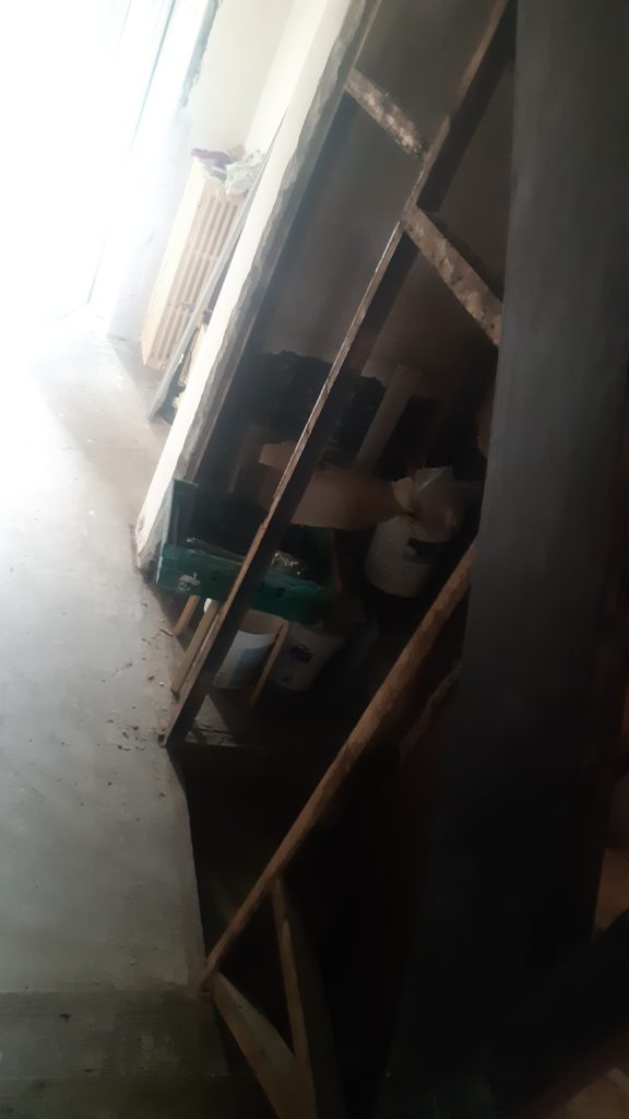 Démolition de la porte de la cave et du cadre complet. Chargé directement dans la Kangoo pour aller à la déchèterie plus tard.